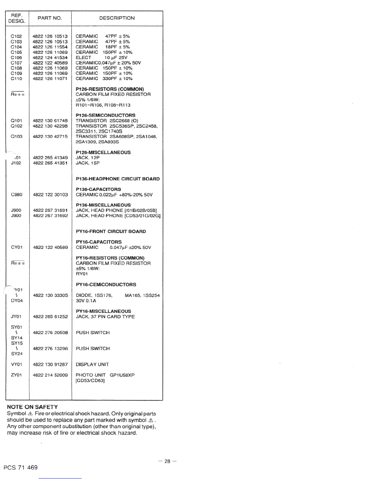 Marantz CD-43 - Capacitors, Resistors, and Other Components List