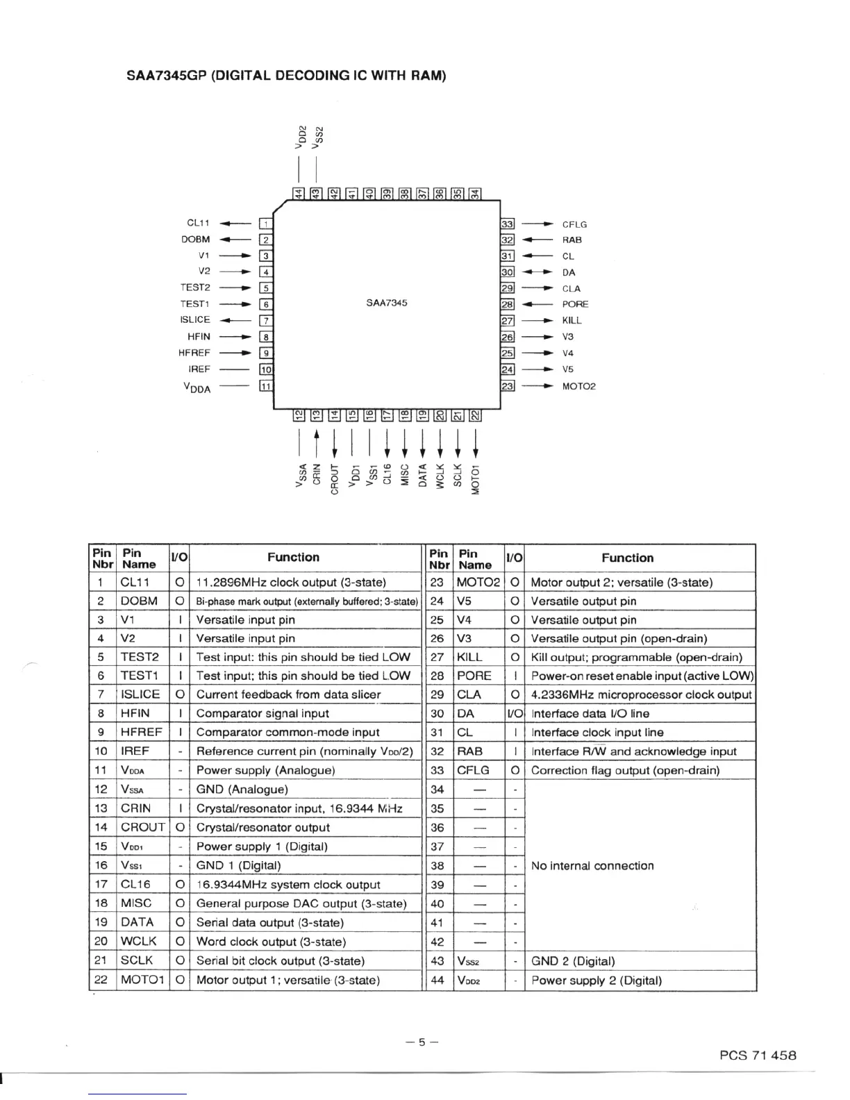 Marantz CD-43 - SAA7345 GP Digital Decoding IC Pinout