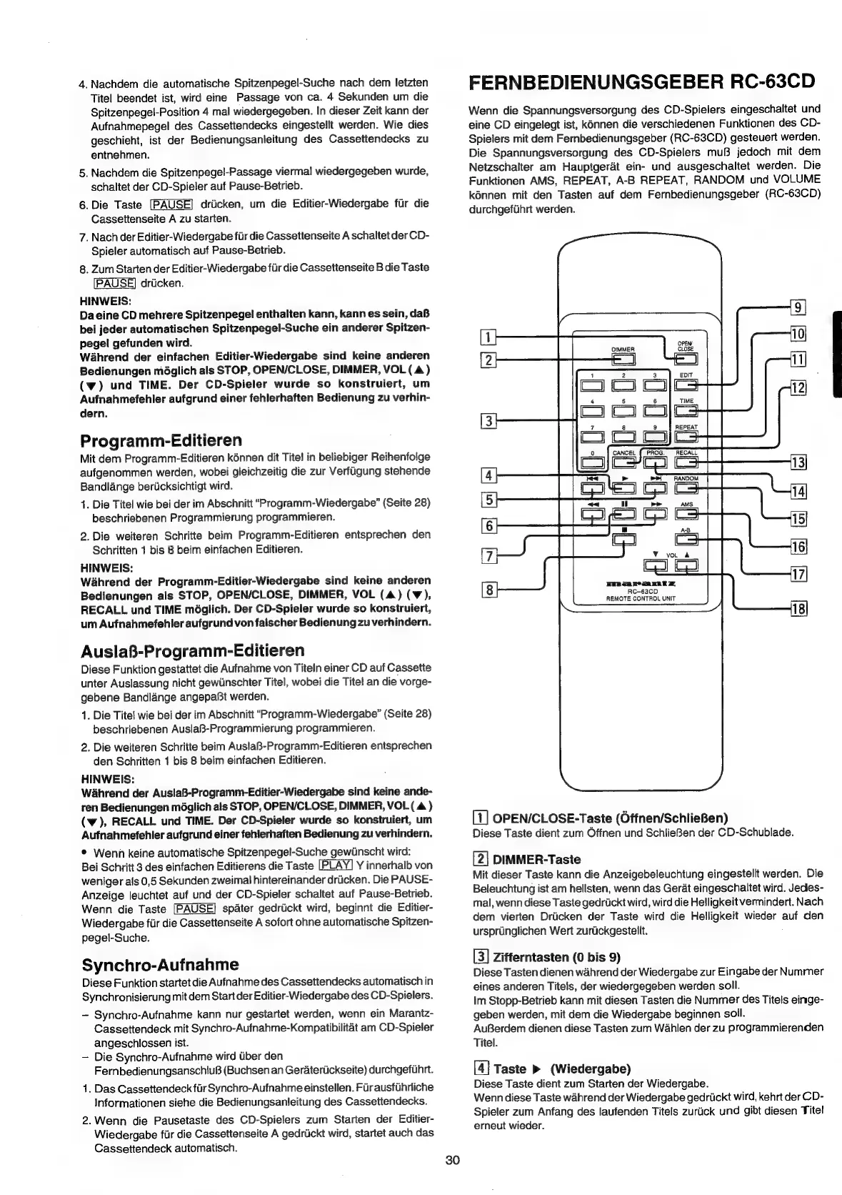 Marantz CD-57mkII - Programm-Editieren