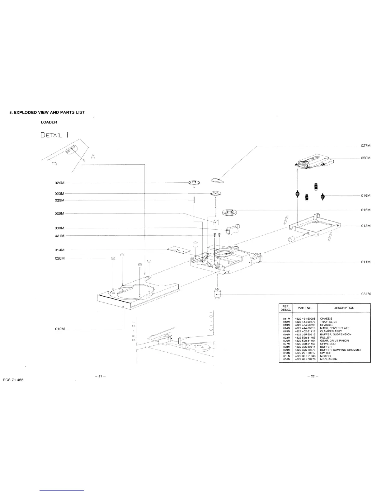 Marantz CD-63 - Loader Mechanism Exploded View; Loader Mechanism Parts List