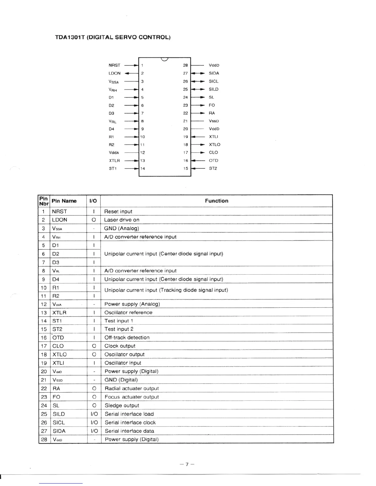 Marantz CD-63 - Servo Control IC TDA1301 T Pin Details