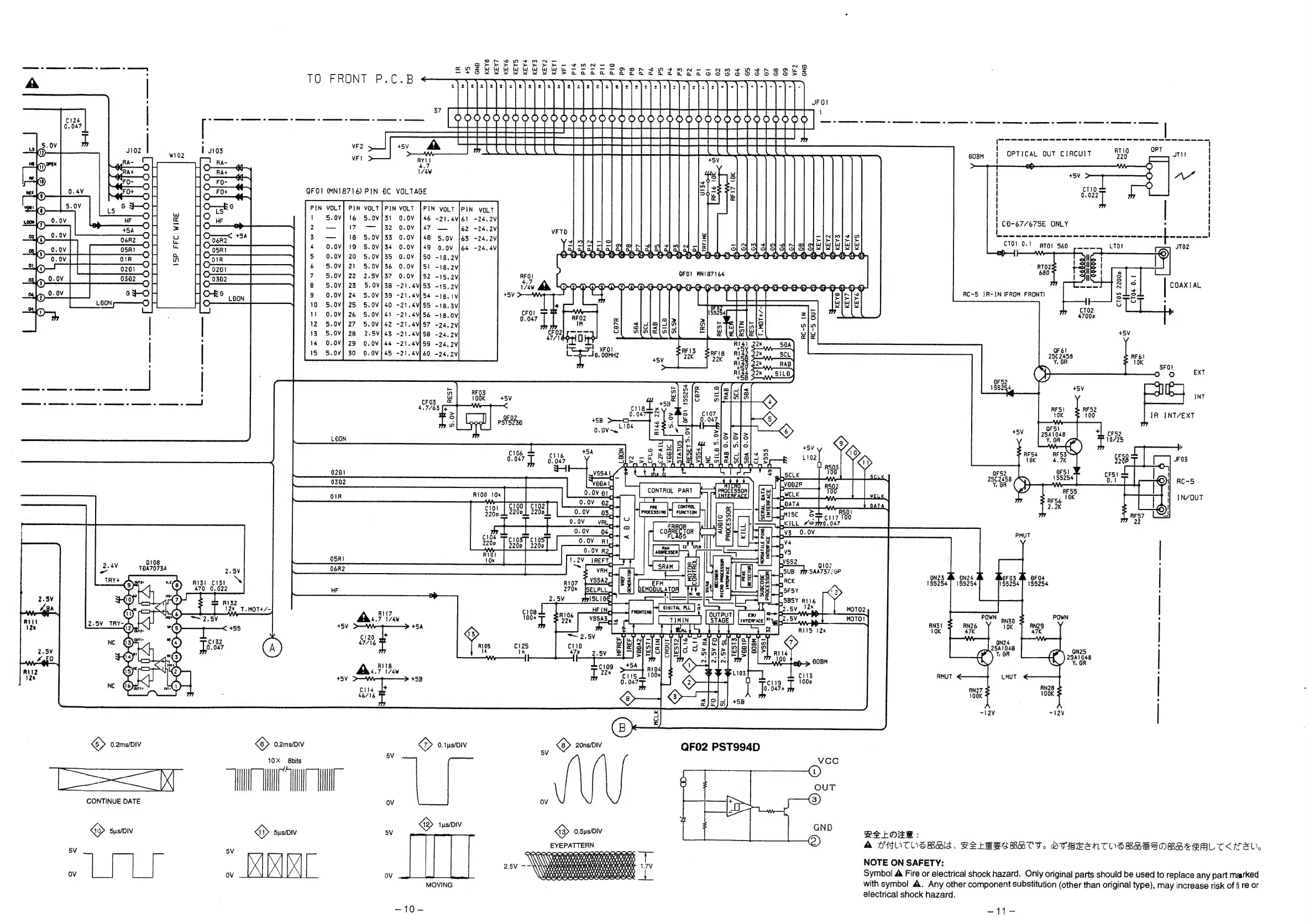 Marantz CD-67 - Front PCB and Signal Waveform Analysis; Front PCB Schematic Diagram; QF02 PS94 D IC Details; Signal Waveform Examples for Troubleshooting