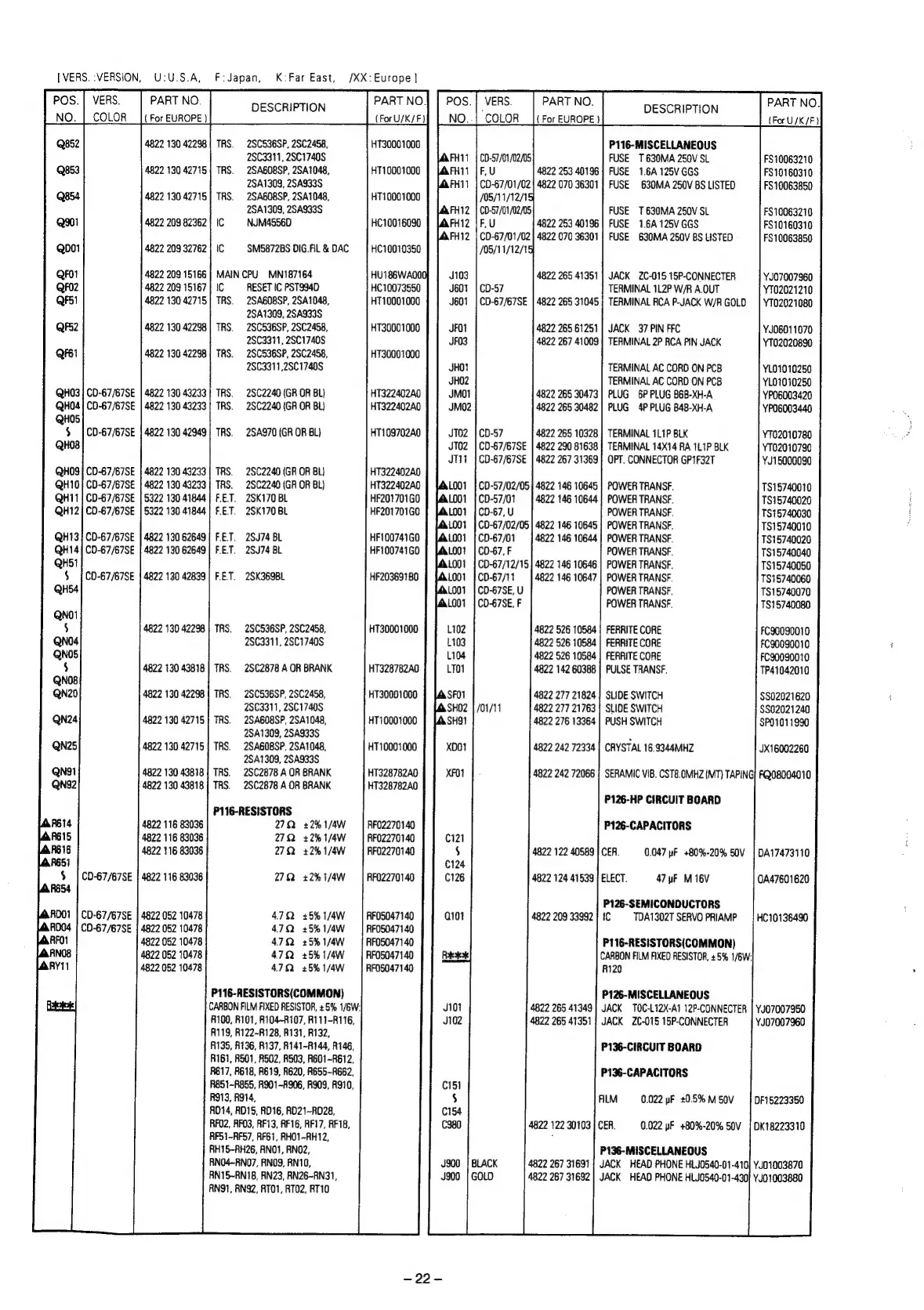Marantz CD-67 - Component Lists for Specific PCBs; P116 Miscellaneous Components; P126 Capacitors and Semiconductors; P136 Circuit Board Components