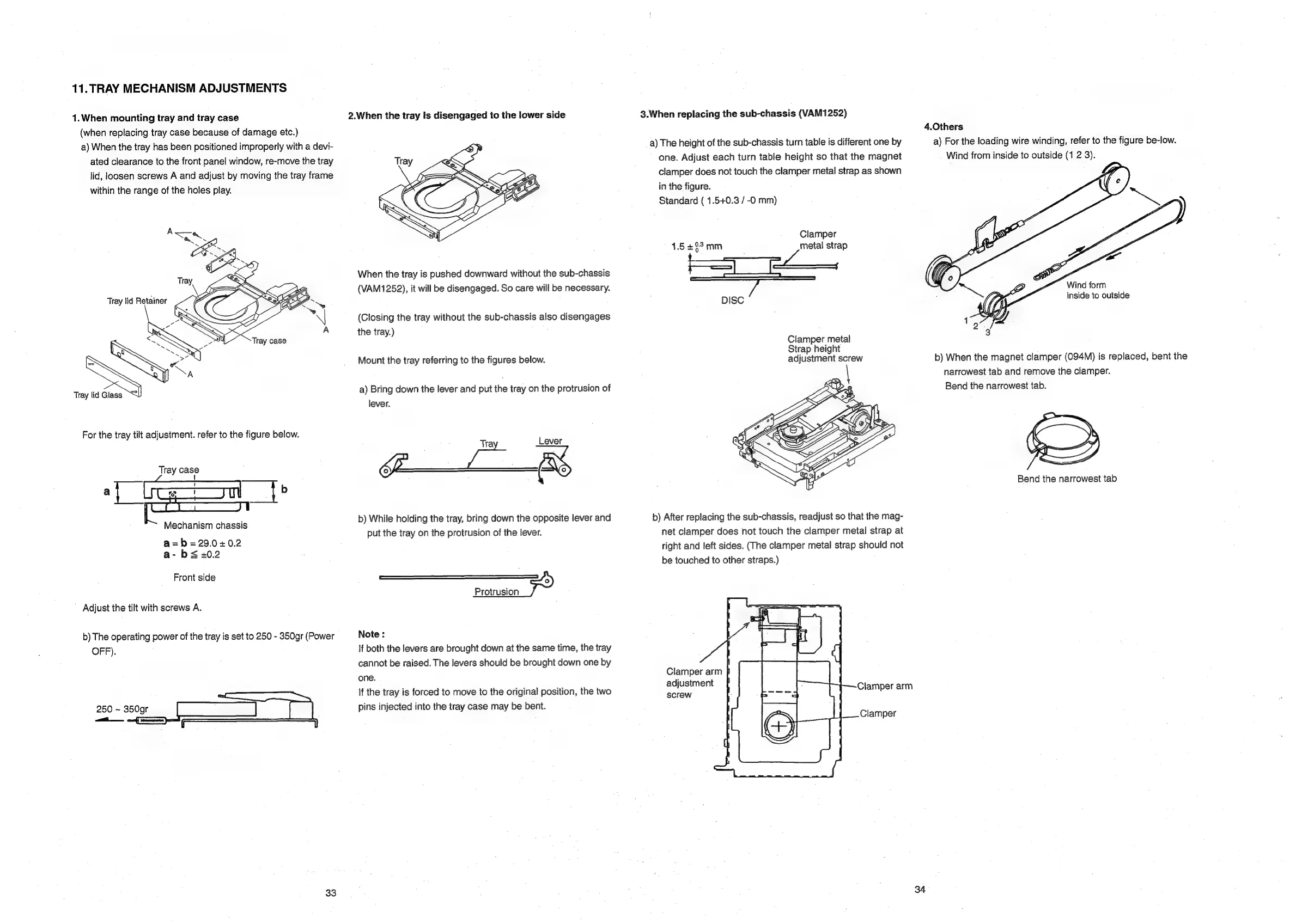 Marantz CD-7 - 11. TRAY MECHANISM ADJUSTMENTS; Tray Case Mounting Procedure; Tray Disengagement and Re-engagement; Sub-chassis Replacement Adjustments