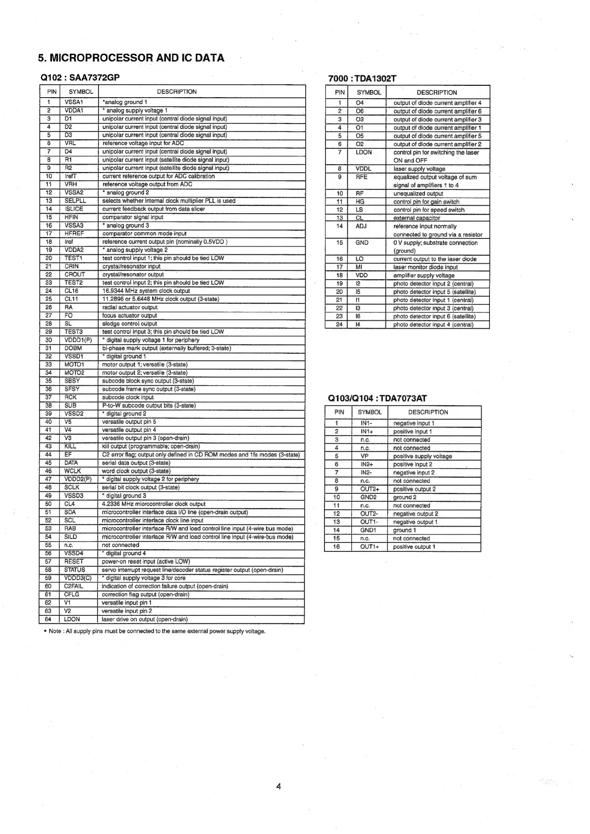 Marantz CD-7 - 5. MICROPROCESSOR AND IC DATA