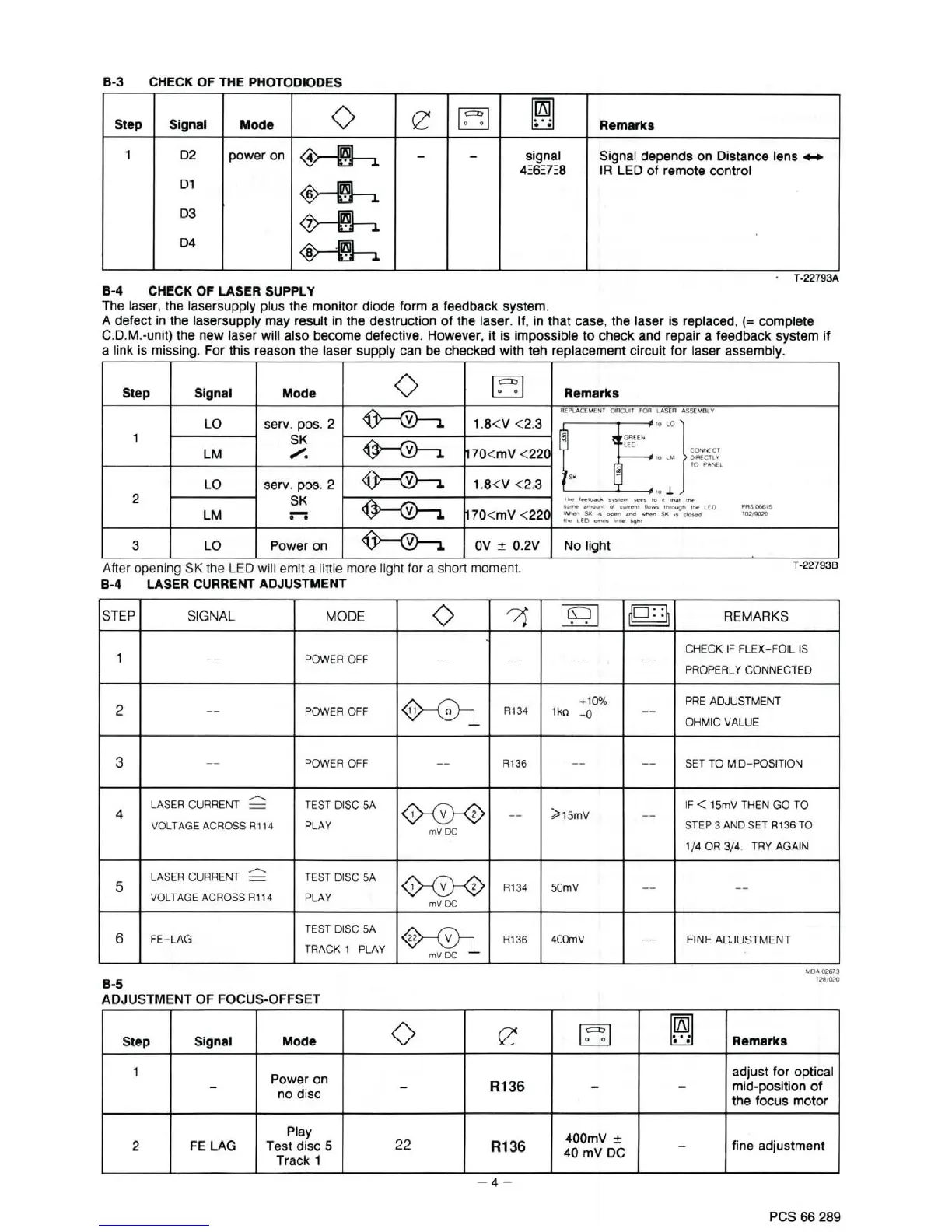 Marantz CD-72SE - Photodiode Check Procedure; Laser Supply and Current Adjustment; Focus Offset Adjustment