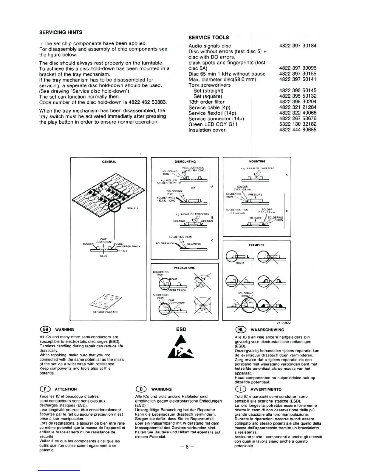 Marantz CD-72SE - Servicing Hints; Handling Chip Components; Electrostatic Discharge (ESD) Precautions