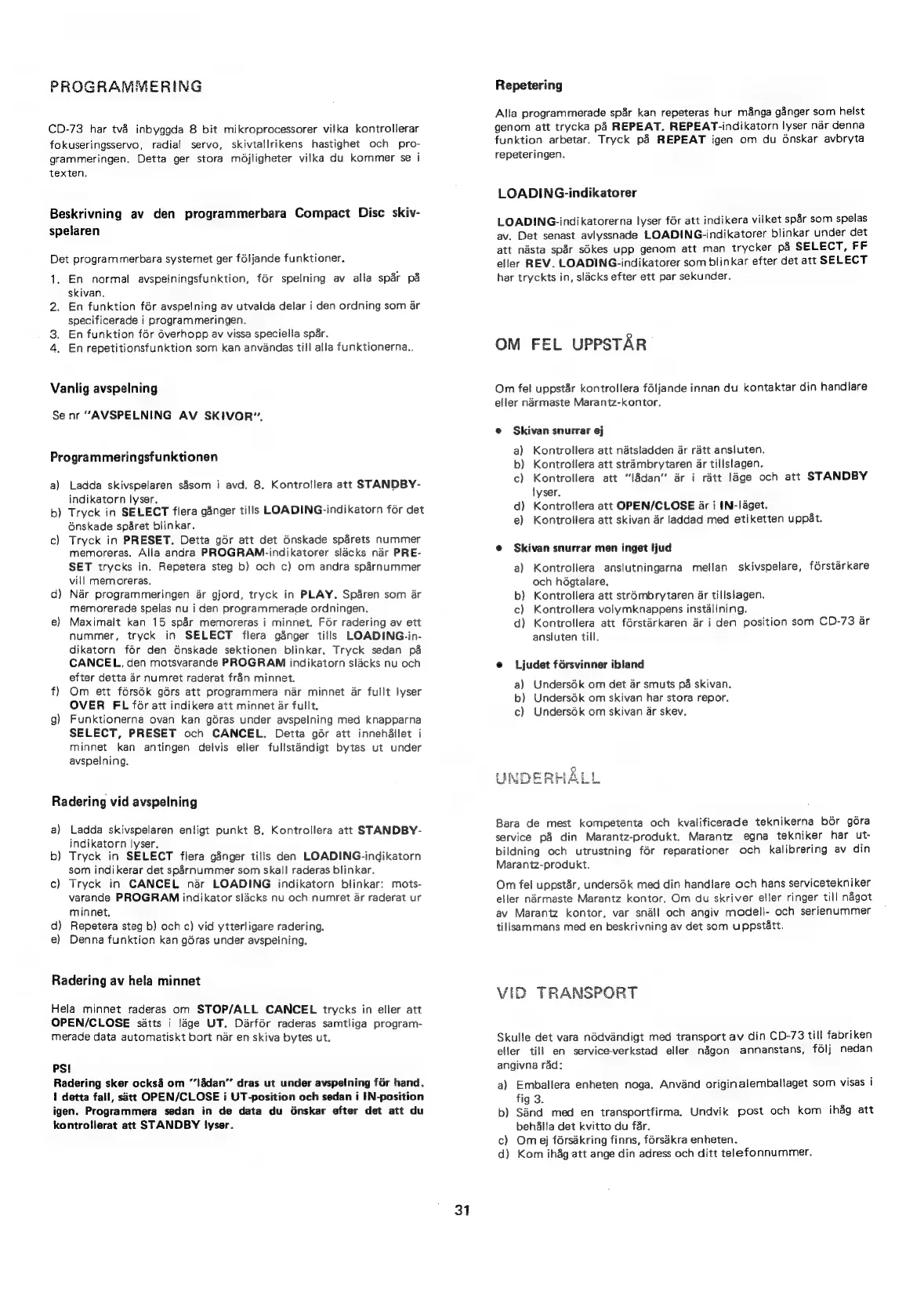 Other manuals for Marantz CD-73