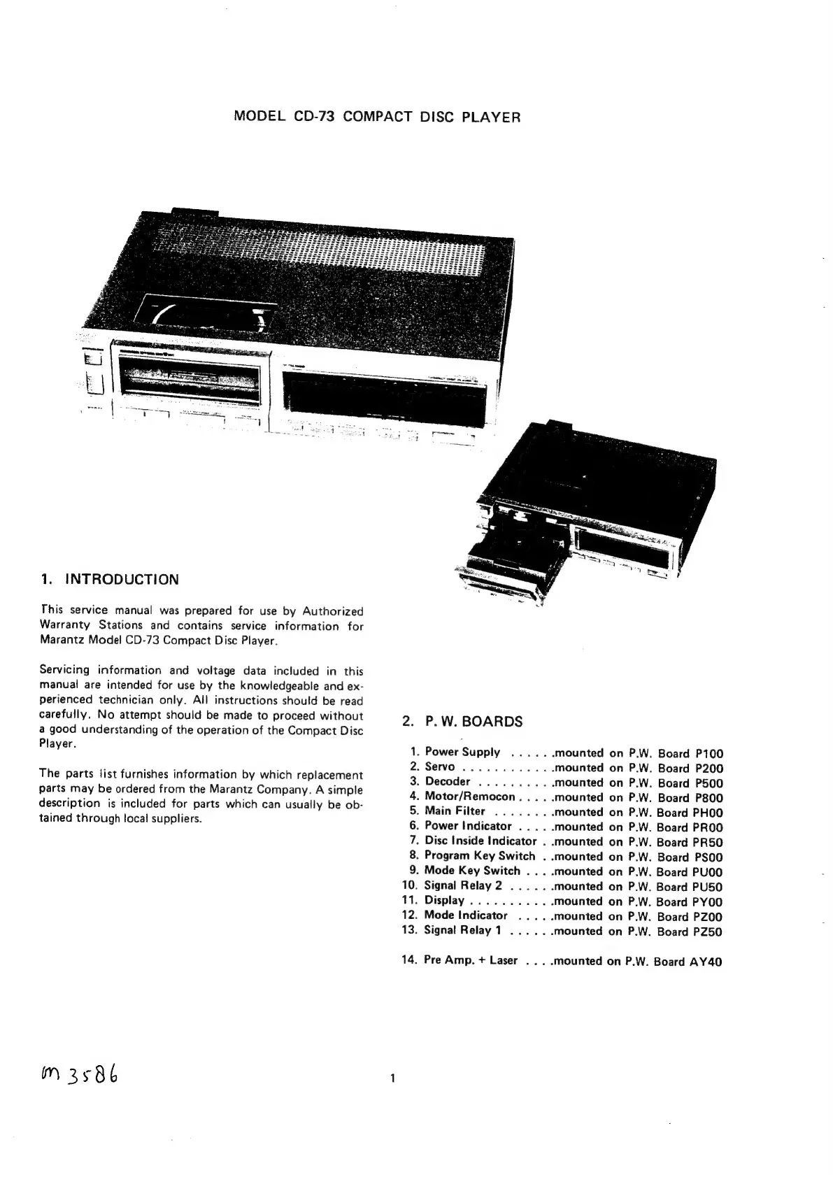 Marantz CD-73 - 1. INTRODUCTION; 2. P.W. BOARDS
