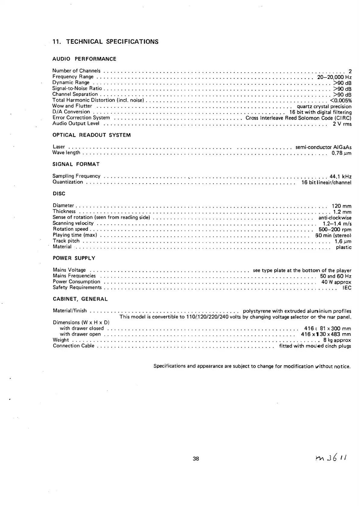 Marantz CD-73 - 11. TECHNICAL SPECIFICATIONS