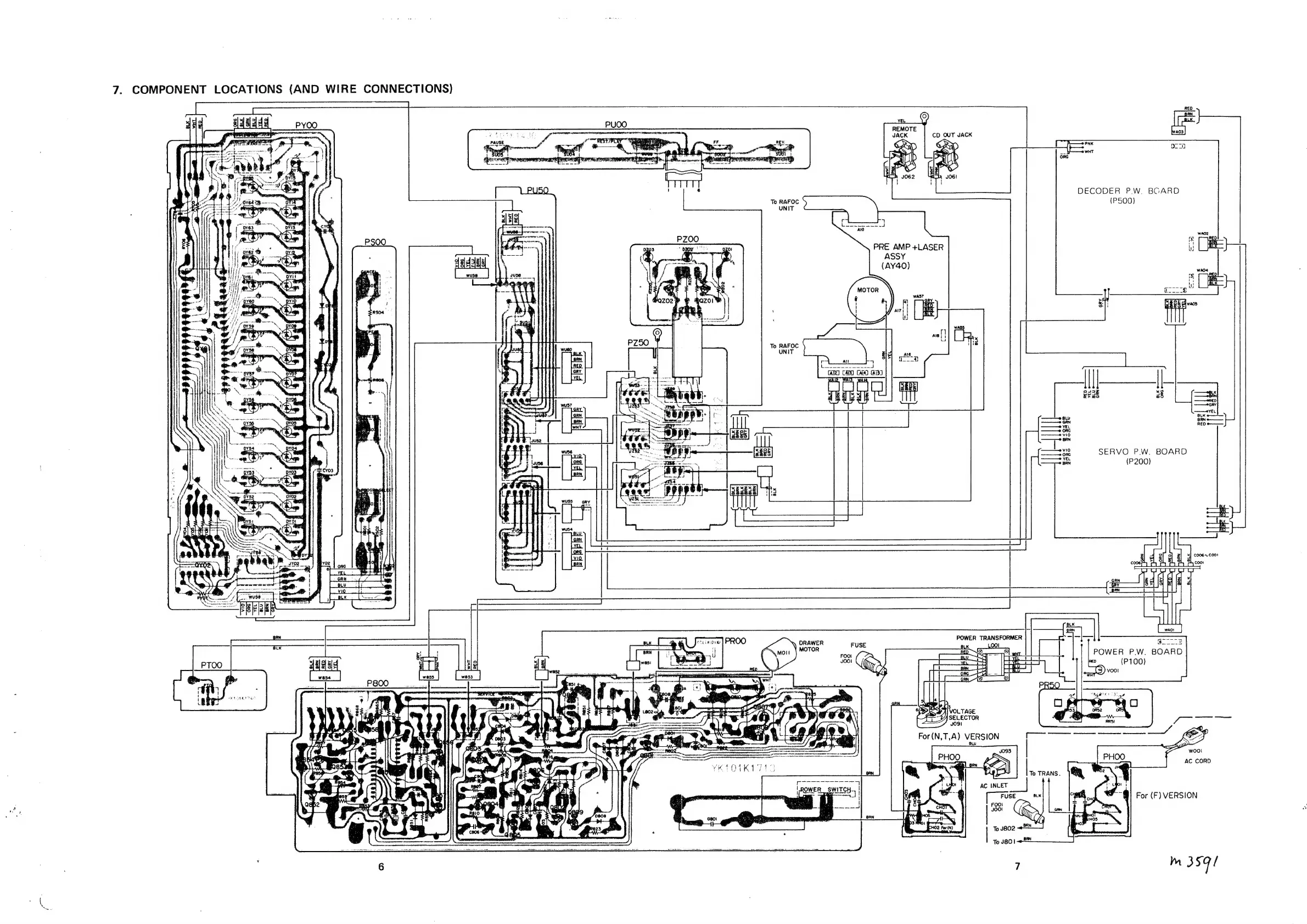 Marantz CD-73 - 7. COMPONENT LOCATIONS (AND WIRE CONNECTIONS)