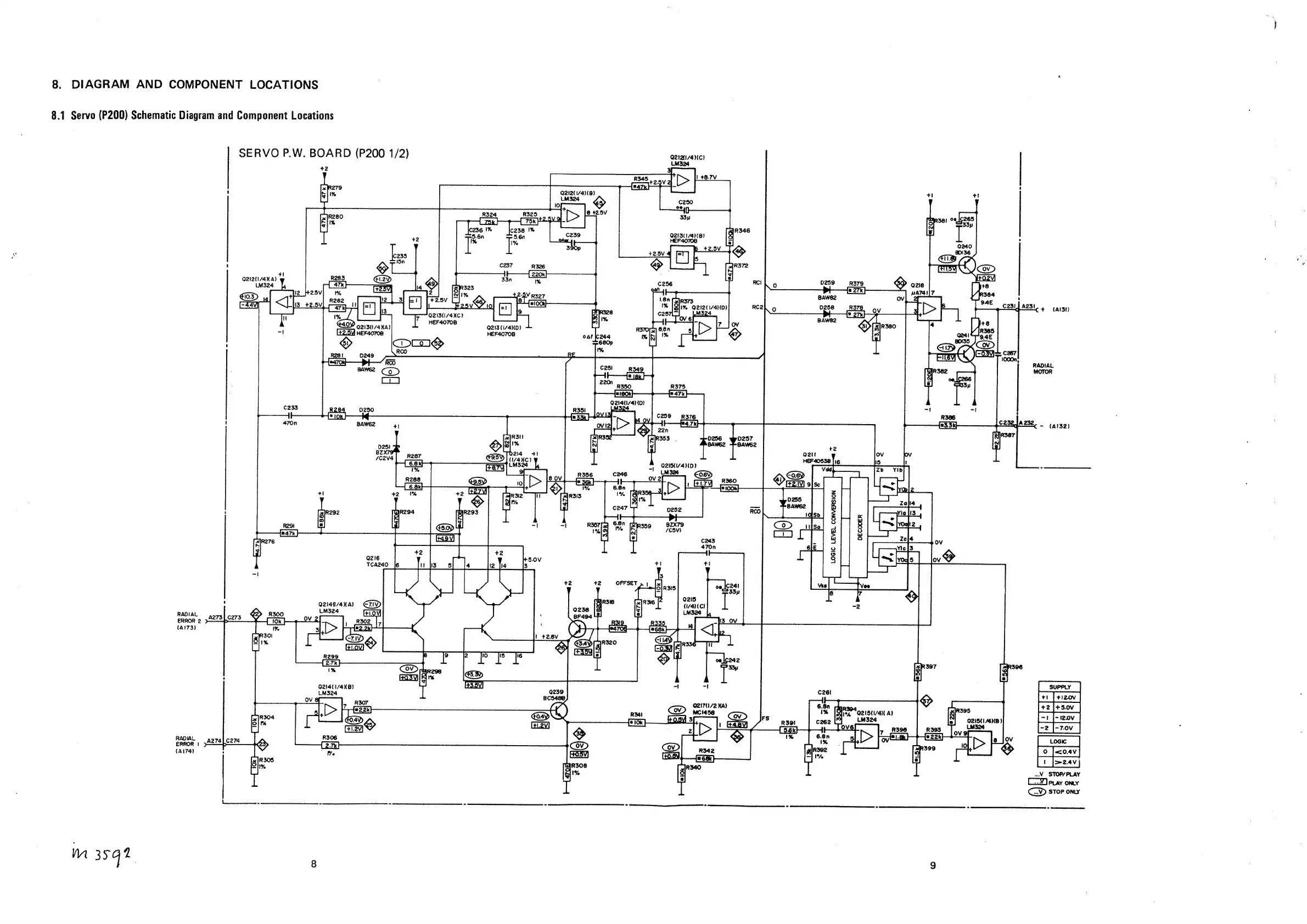 Marantz CD-73 - 8. DIAGRAM AND COMPONENT LOCATIONS; 8.1 Servo (P200) Schematic Diagram and Component Locations