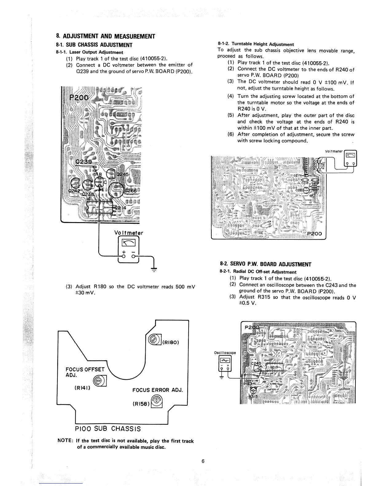 Marantz CD-74 - Adjustment and Measurement Procedures; Sub Chassis Adjustment Guide; Servo P.W. Board Adjustment