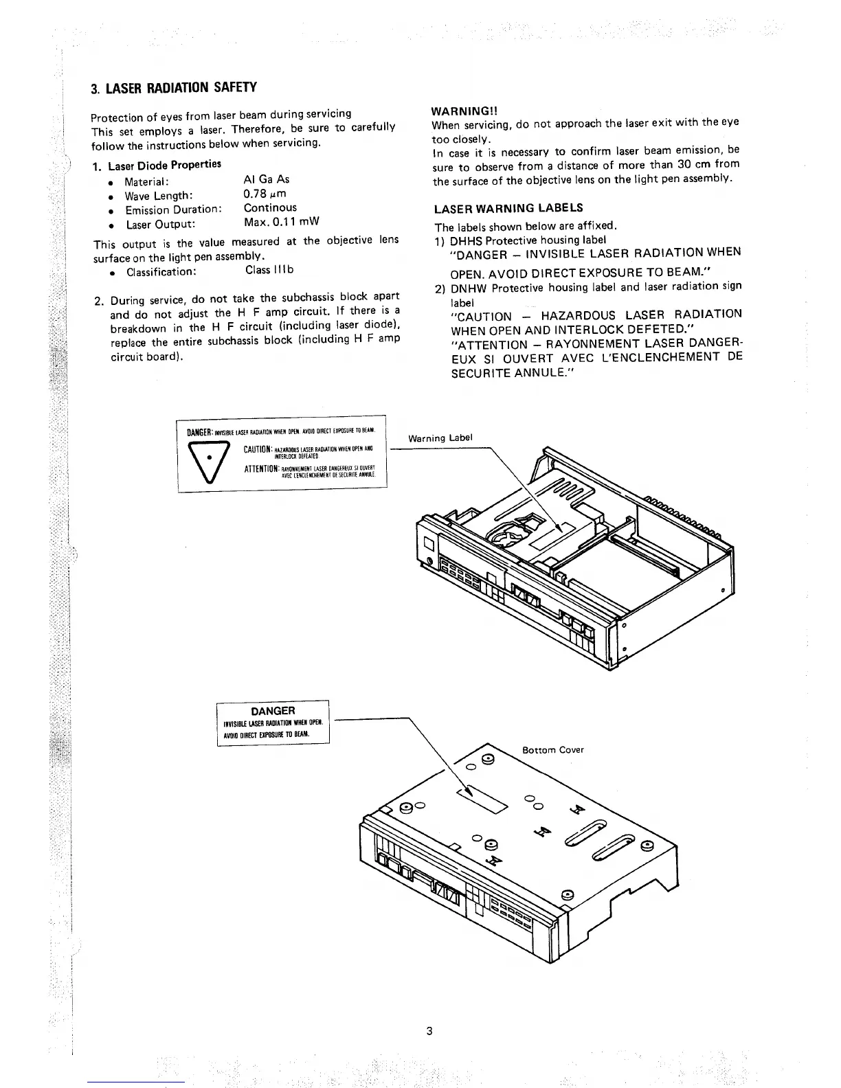 Marantz CD-74 - Laser Radiation Safety Precautions; Servicing Safety Measures