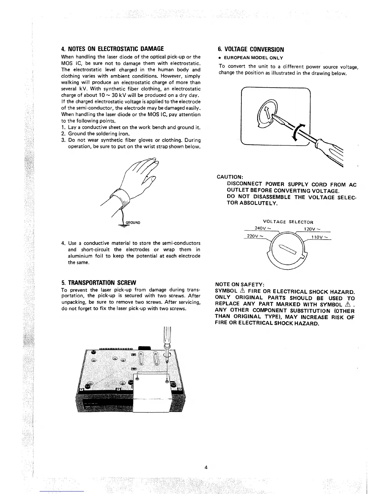 Marantz CD-84 - Notes on Electrostatic Damage; Voltage Conversion; Transportation Screw