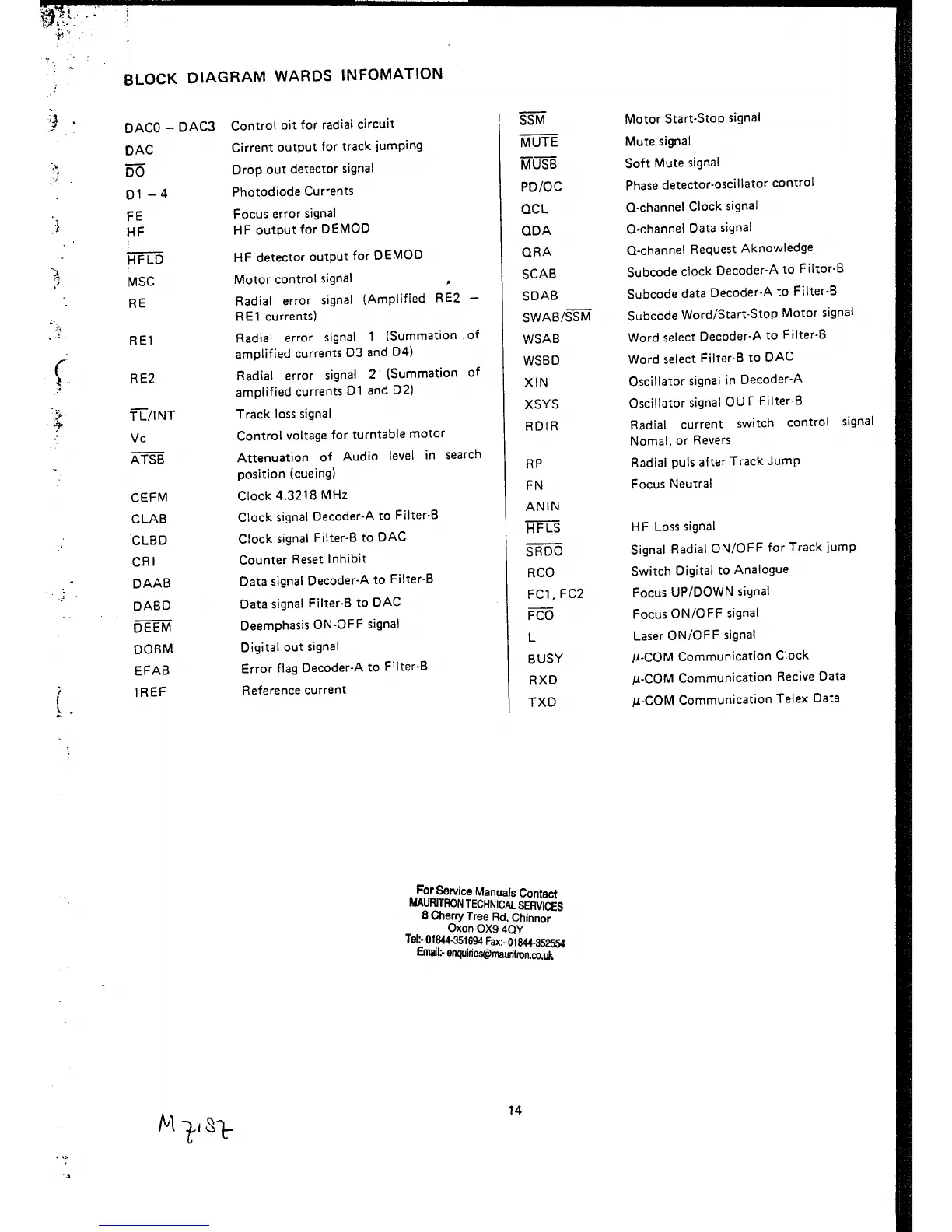 Marantz CD-94 - Component Schematics, Diagrams, Parts, and Specifications; Block Diagrams and Information