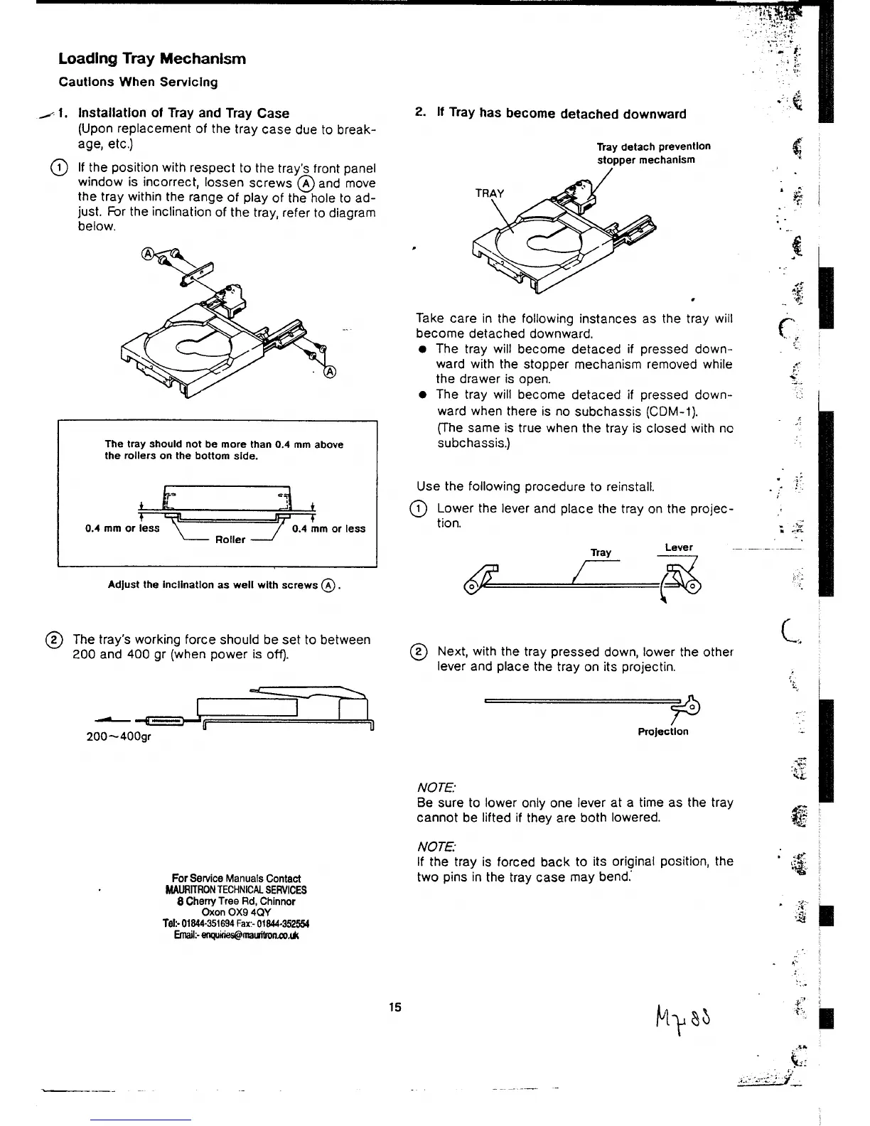 Marantz CD-94 - Mechanical Components and Adjustments; Loading Tray Mechanism