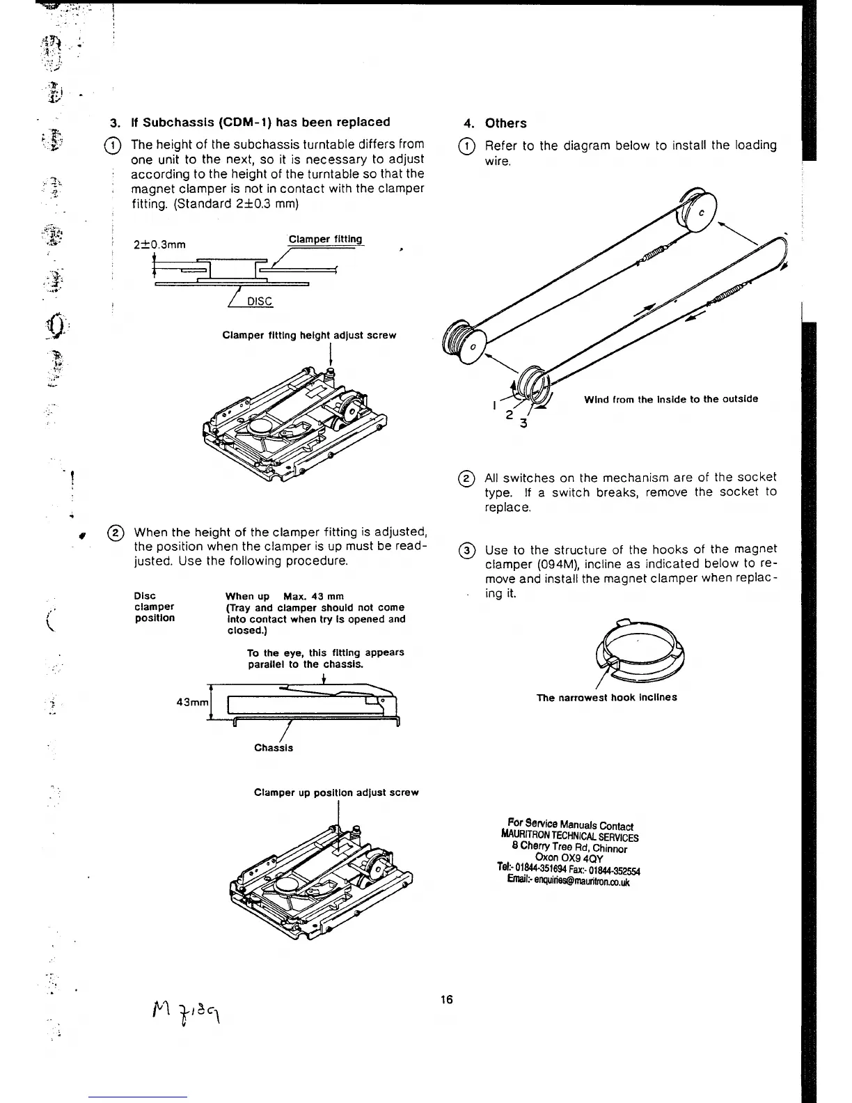Marantz CD-94 - Subchassis and Clamp Adjustments