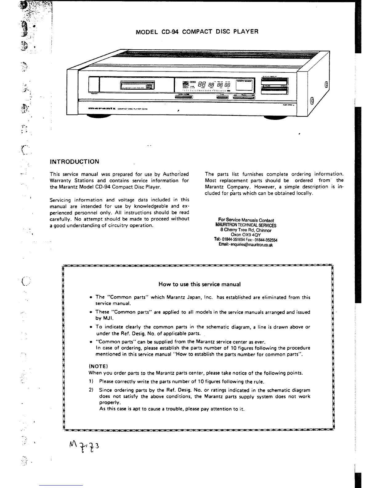 Marantz CD-94 - Introduction and Manual Usage; How to Use This Service Manual