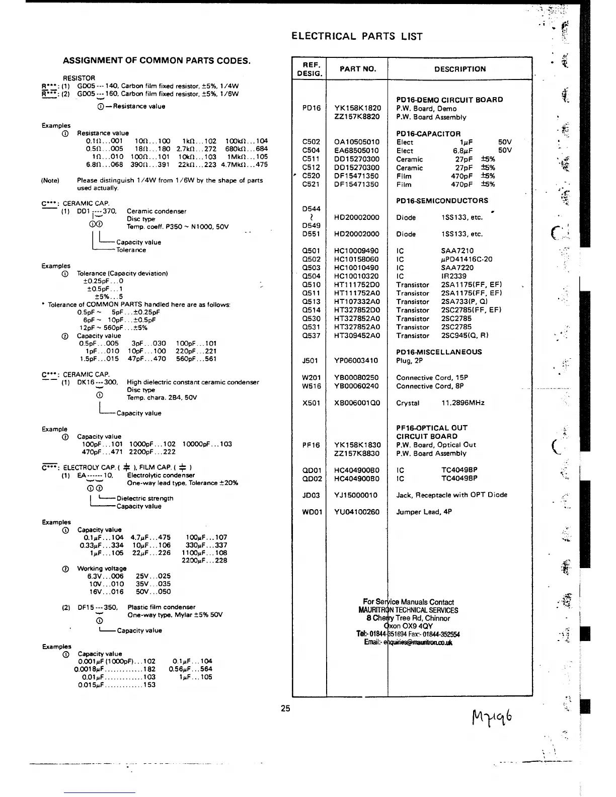 Marantz CD-94 - Electrical Parts List; Assignment of Common Parts Codes