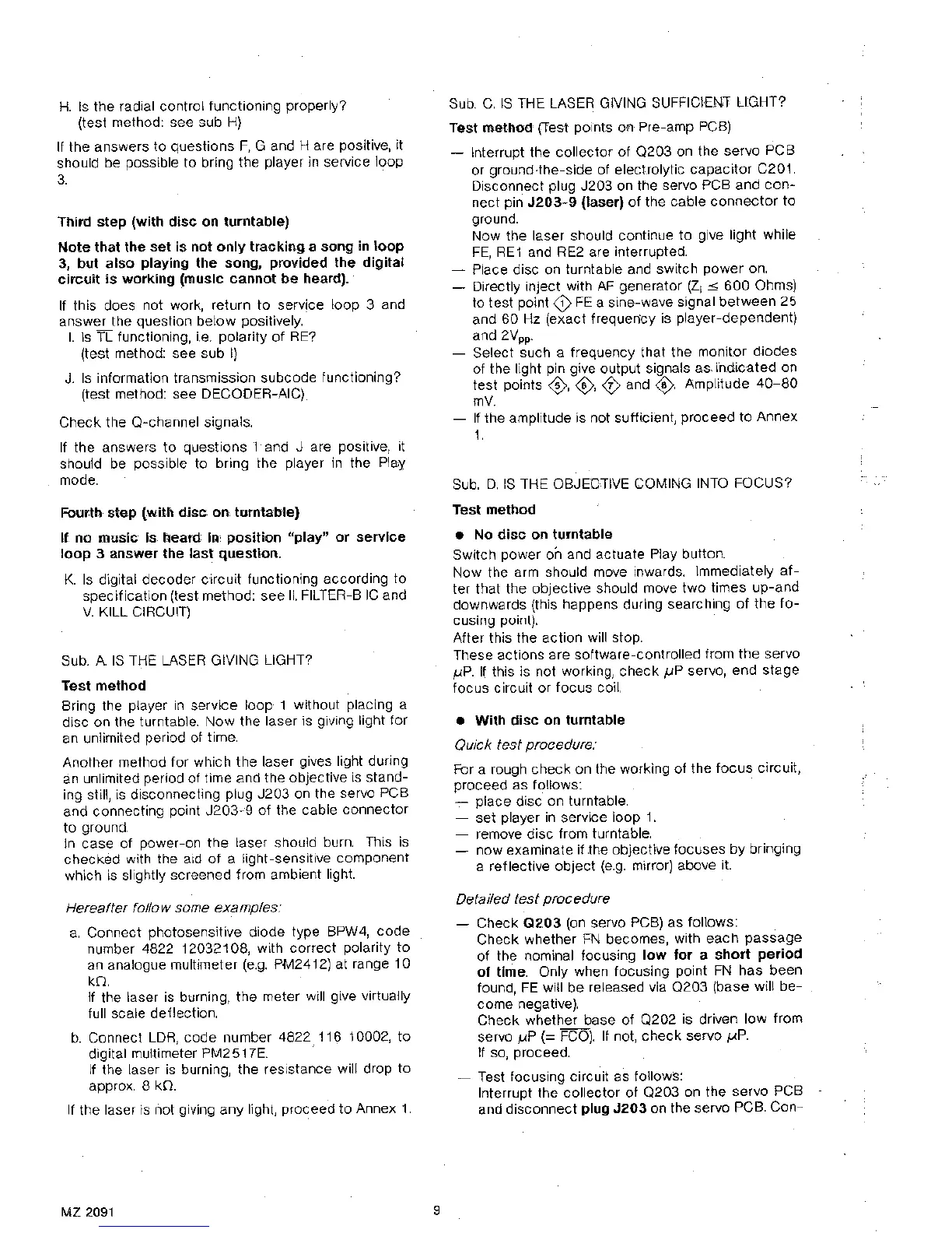 Marantz CD-95DR - Third step (with disc on turntable); Fourth step (with disc on turntable); Sub. A. IS THE LASER GIVING LIGHT?; Sub. C. IS THE LASER GIVING SUFFICIENT LIGHT?