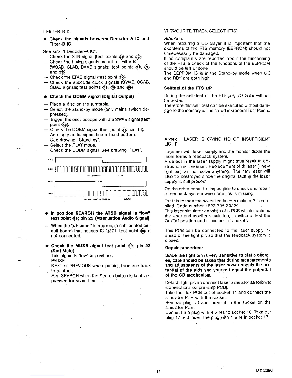 Marantz CD-95DR - I FILTER-B IC; Check the signals between Decoder-A IC and Filter-B IC; Annex I: LASER IS GIVING NO OR INSUFFICIENT LIGHT