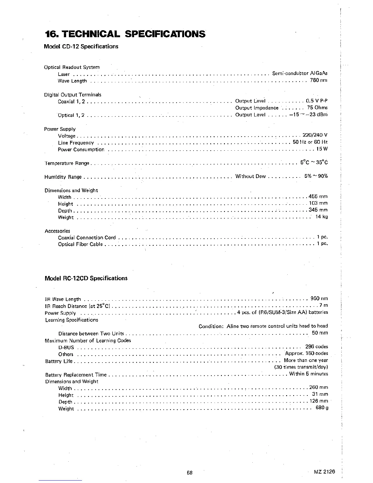 Marantz CD-95DR - 16. TECHNICAL SPECIFICATIONS
