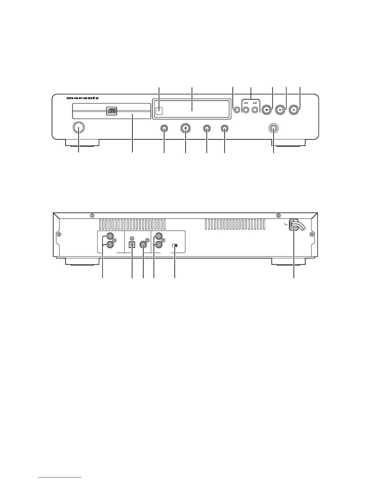 Marantz CD Player - Front and Rear Views; Front View Diagram; Rear View Diagram