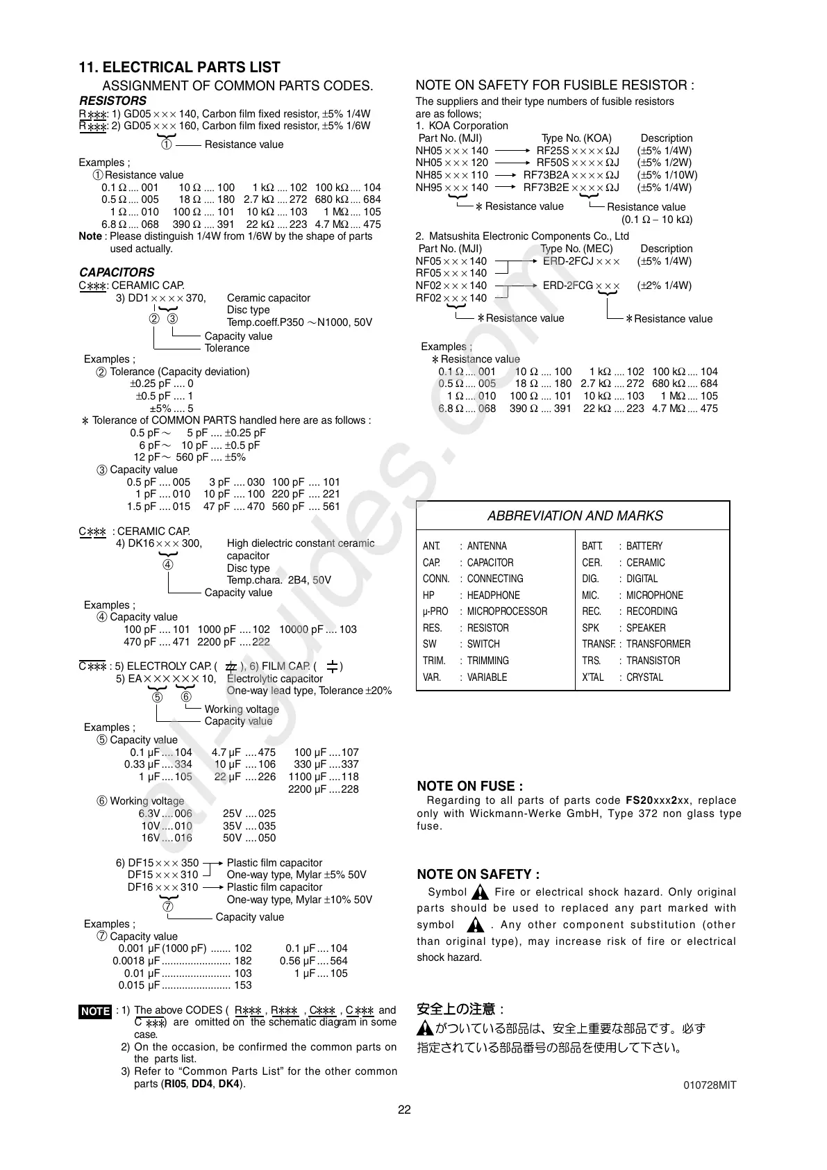 NOTE ON SAFETY FOR FUSIBLE RESISTOR :