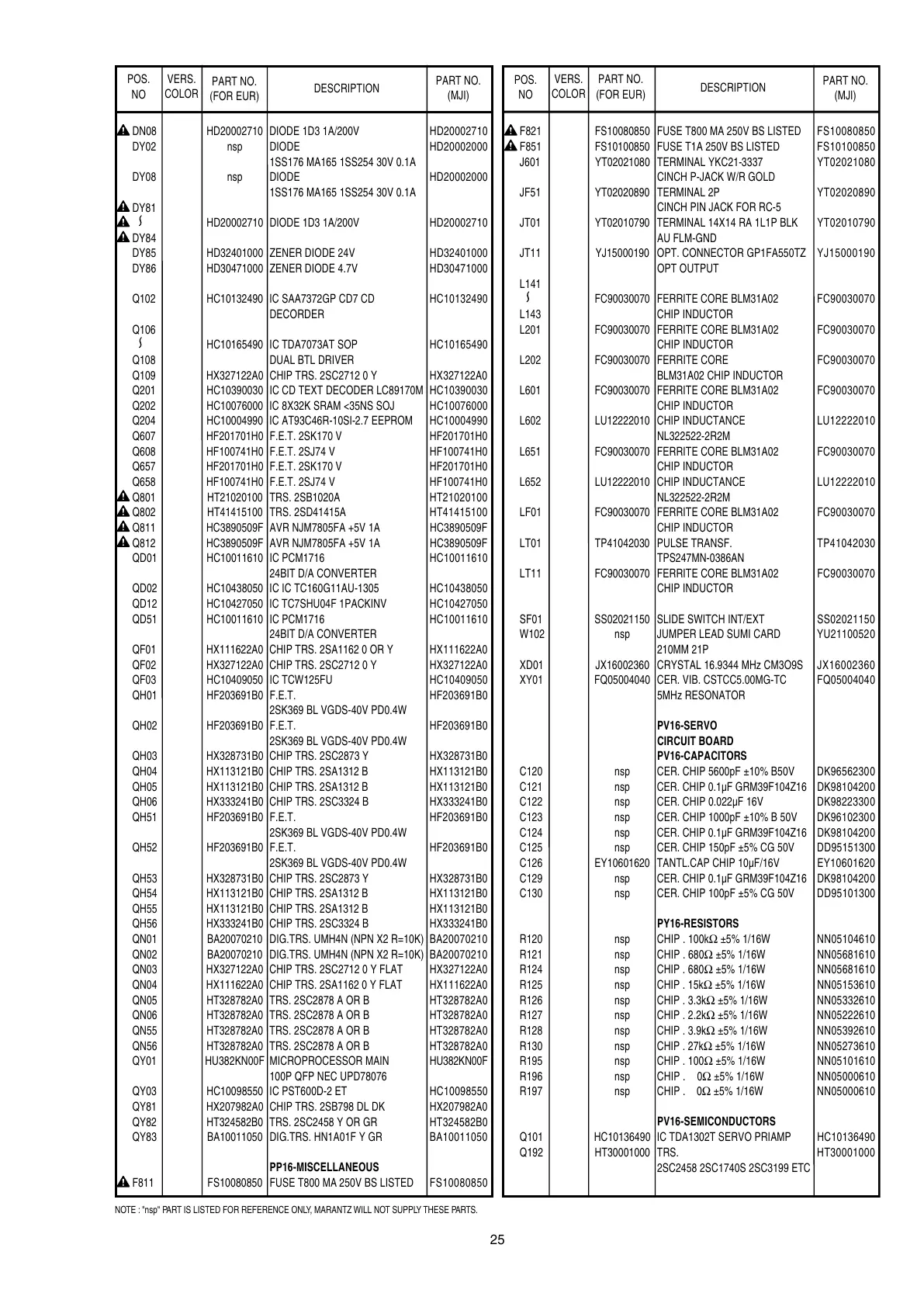 NOTE : "nsp" PART IS LISTED FOR REFERENCE ONLY, MARANTZ WILL NOT SUPPLY THESE PARTS.