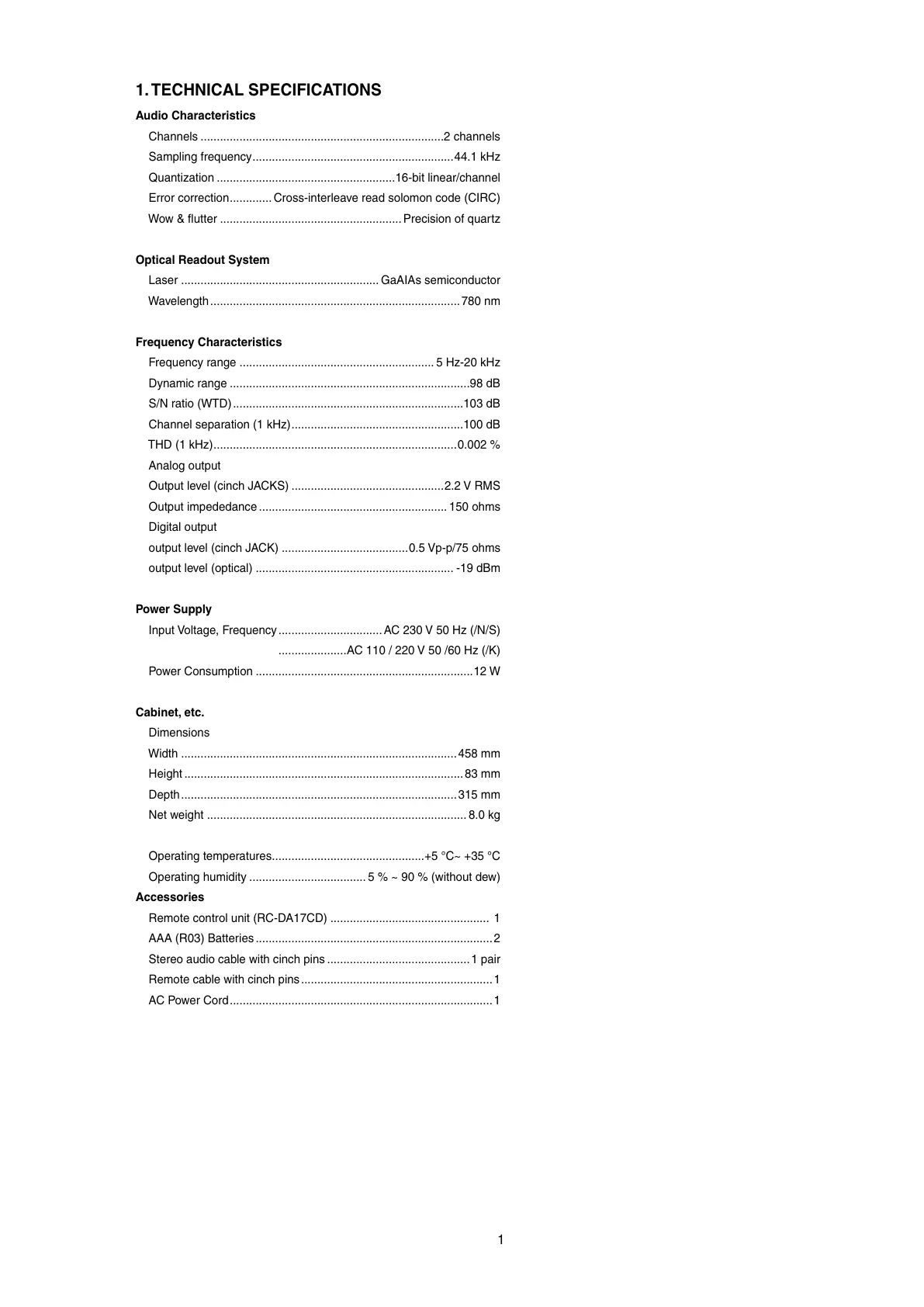 Output level (cinch JACKS) ...............................................2.2 V RMS