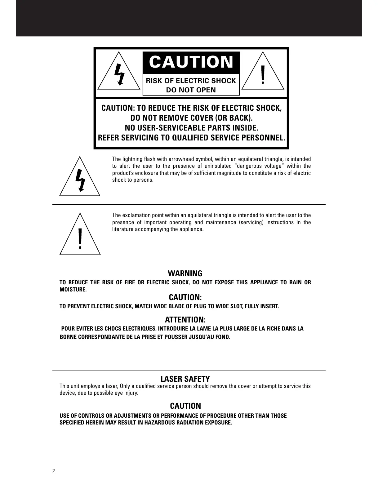 CAUTION: TO REDUCE THE RISK OF ELECTRIC SHOCK,