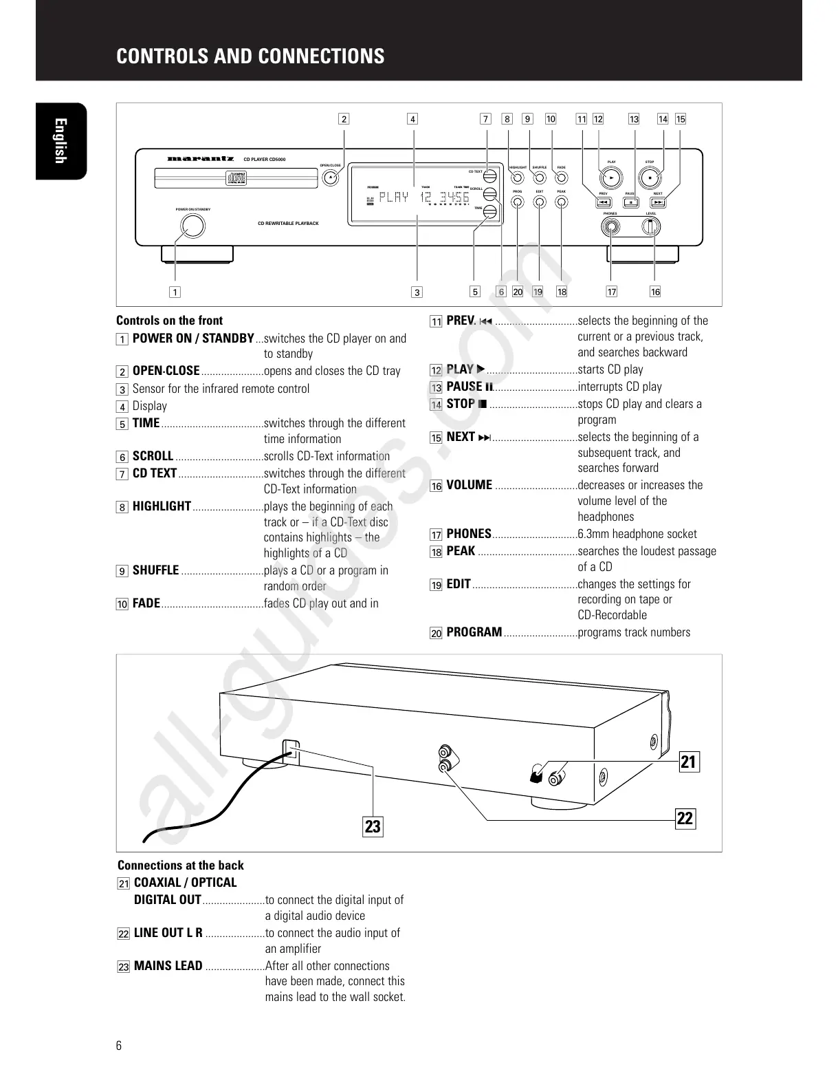 1 POWER ON / STANDBY...switches the CD player on and