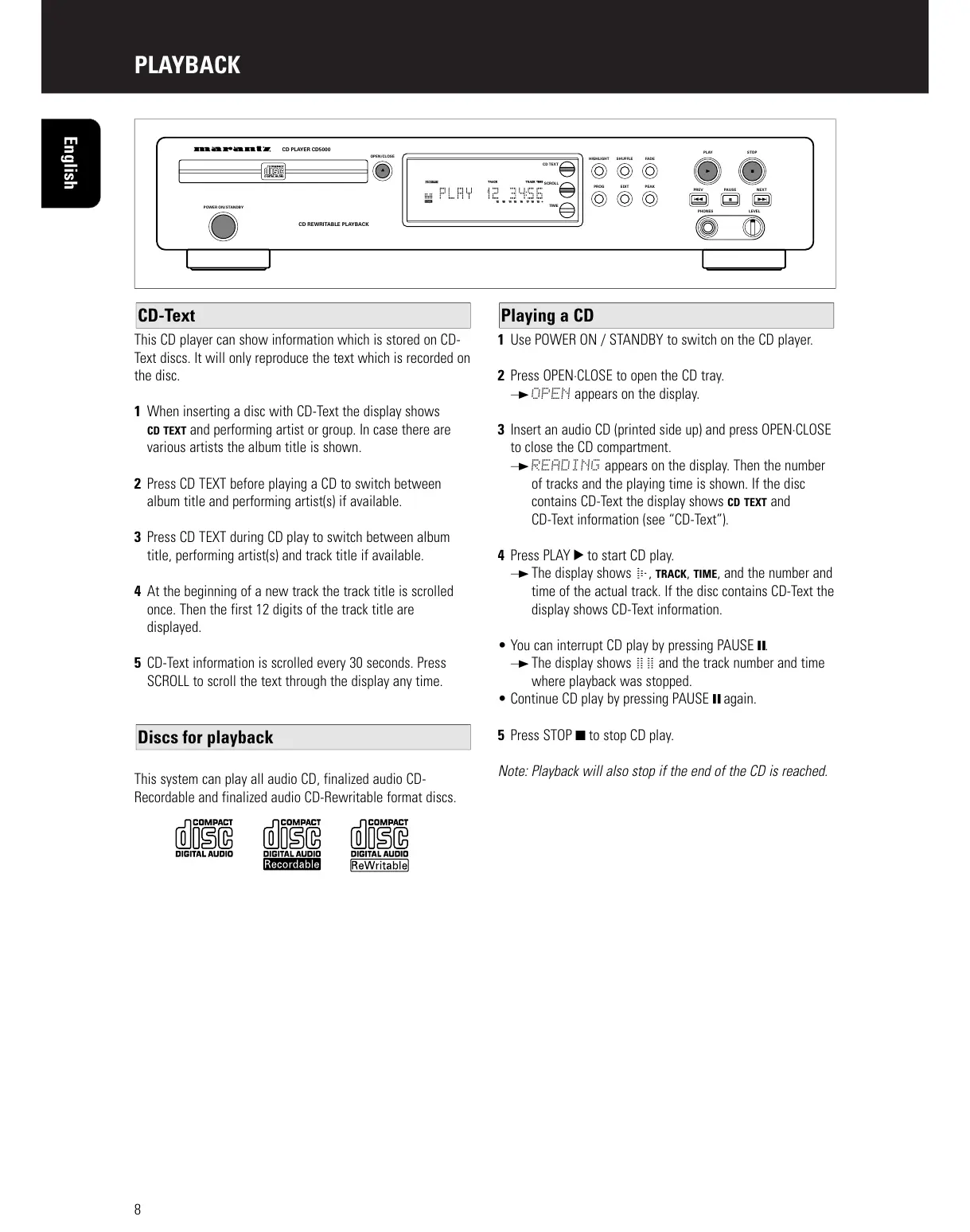 1 Use POWER ON / STANDBY to switch on the CD player.