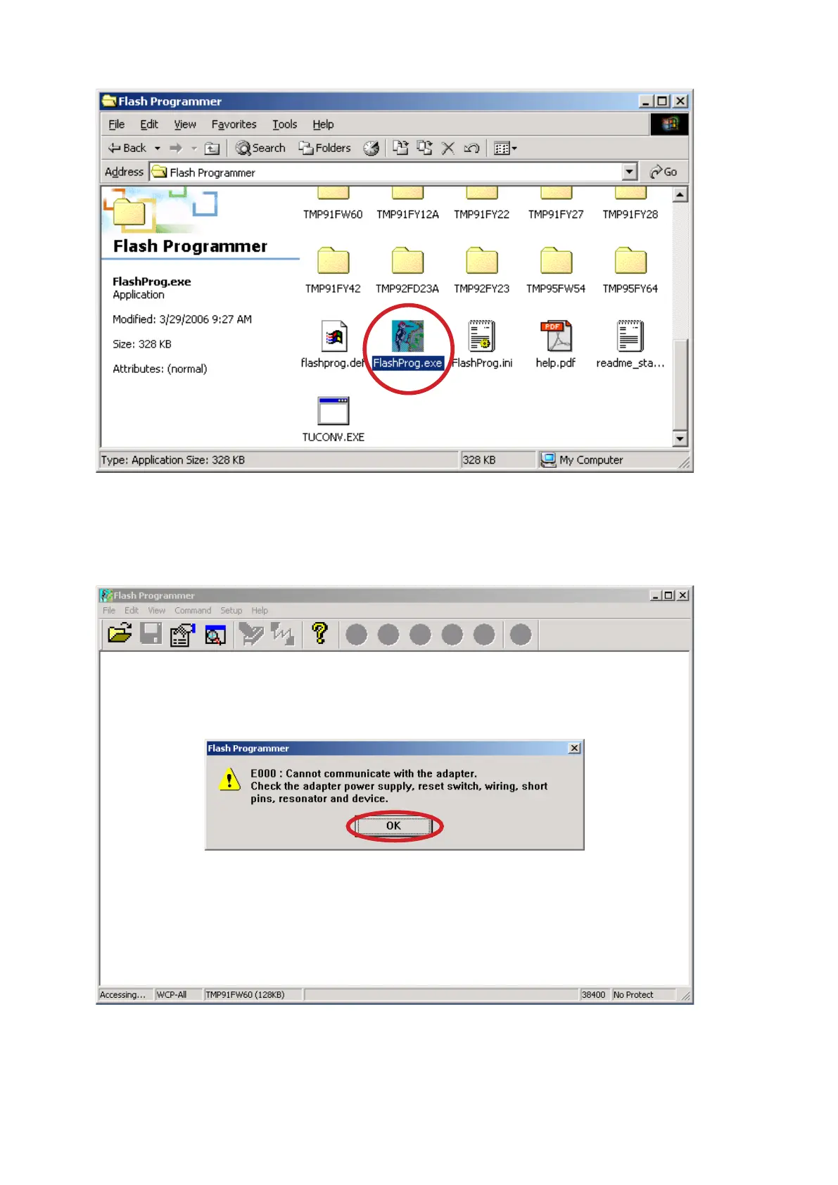 NOTE : When a Flash Programmer does not launch even if double-clicked FlashProg.exe, please refer to "2. When