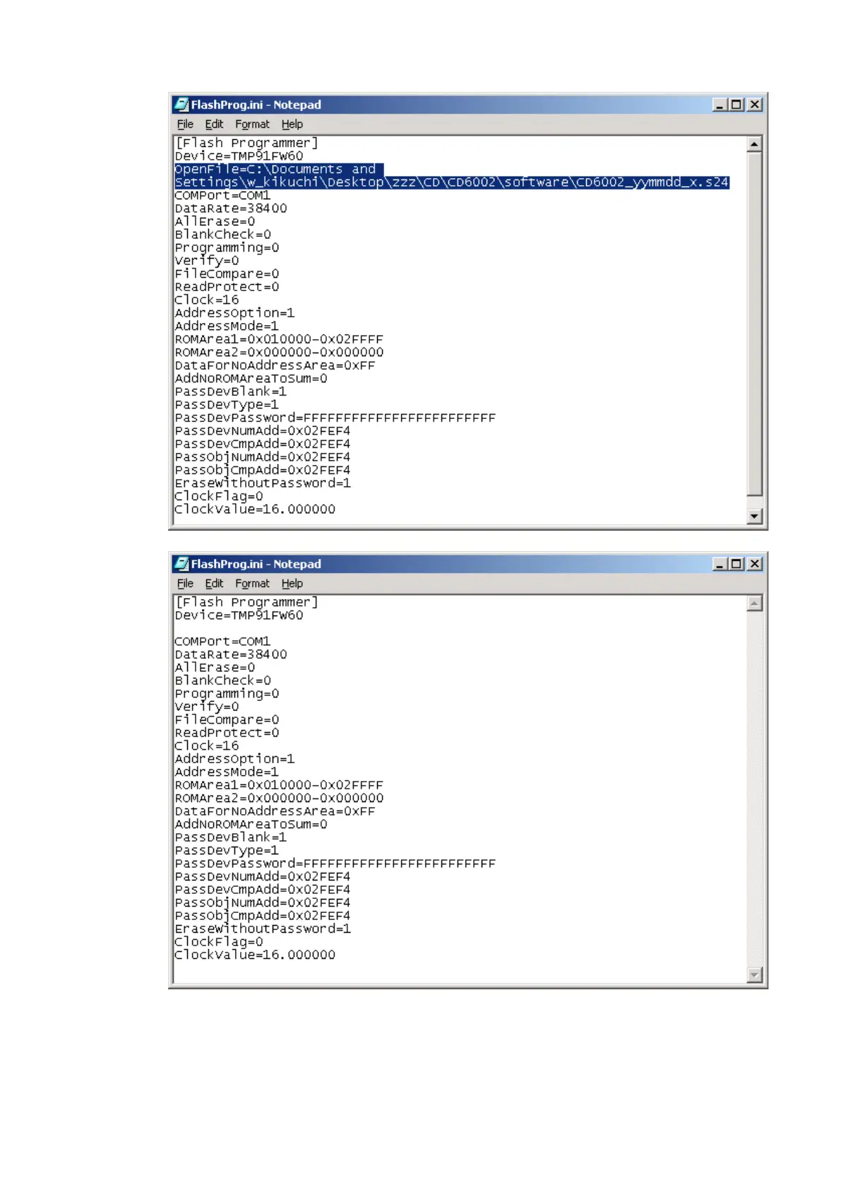 (2) Delete the text "OpenFile=C:\...(your PC setting)...\???.s24".