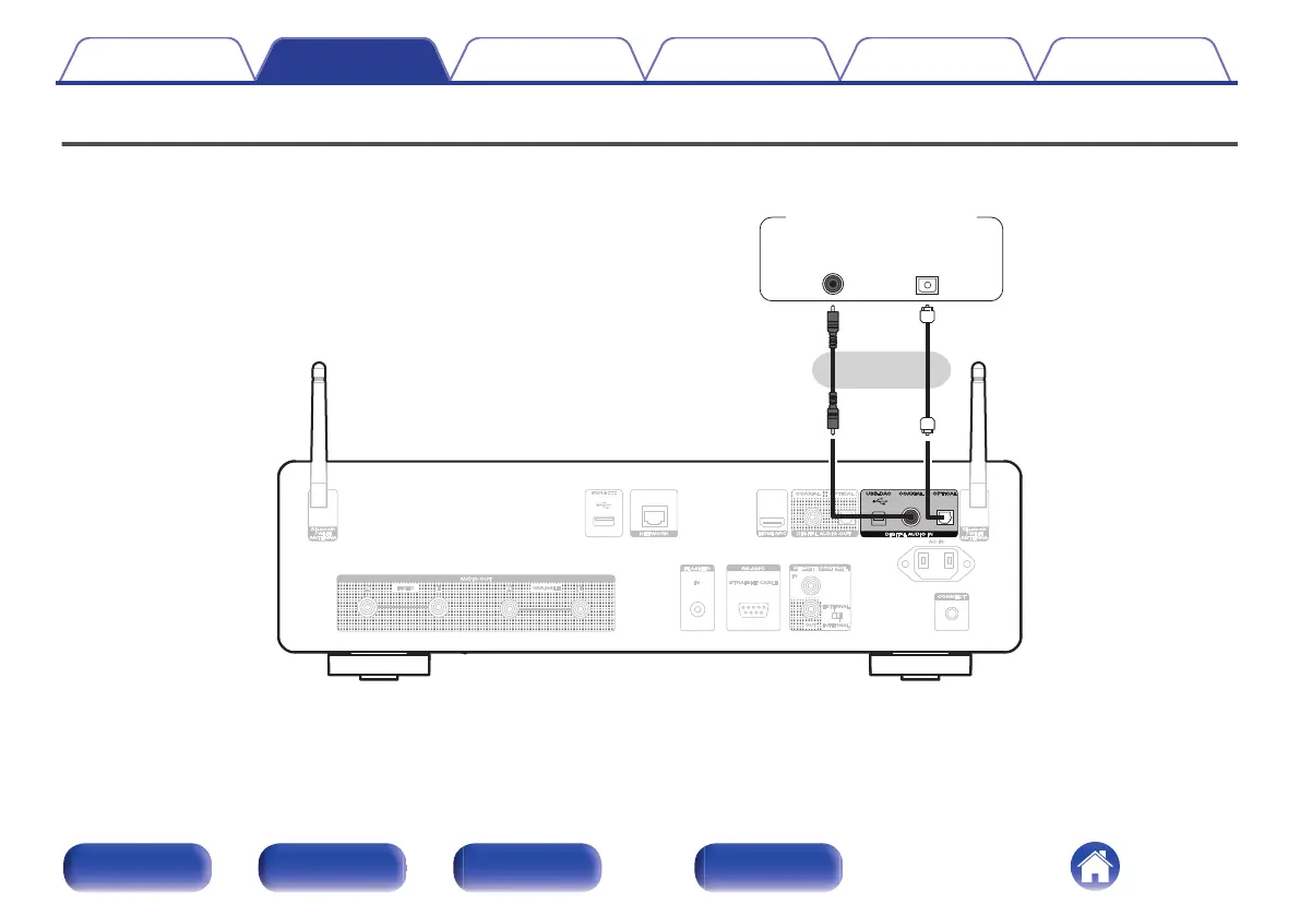 Use this connection to input digital audio signals to this unit, and convert the signals for playback using the D/A converter of this unit. (v p. 71)