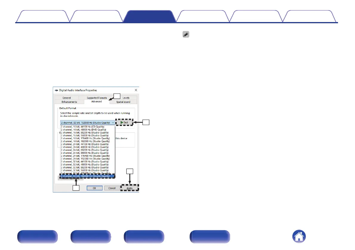 It is recommended that “2 channel, 32 bit, 192000 Hz (Studio