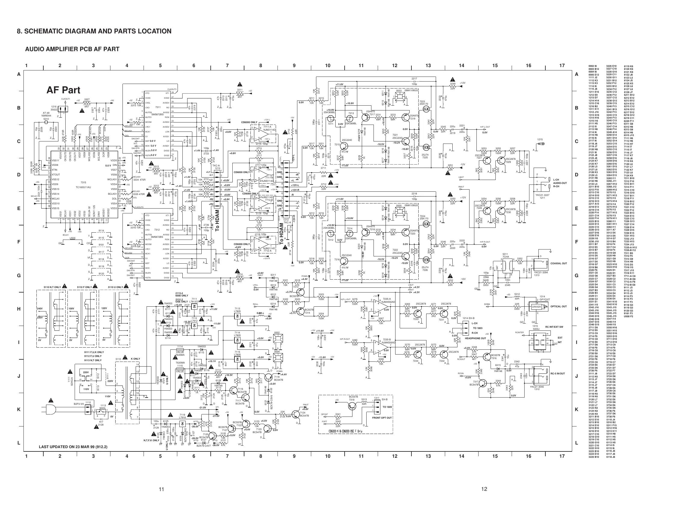 8. SCHEMATIC DIAGRAM AND PARTS LOCATION