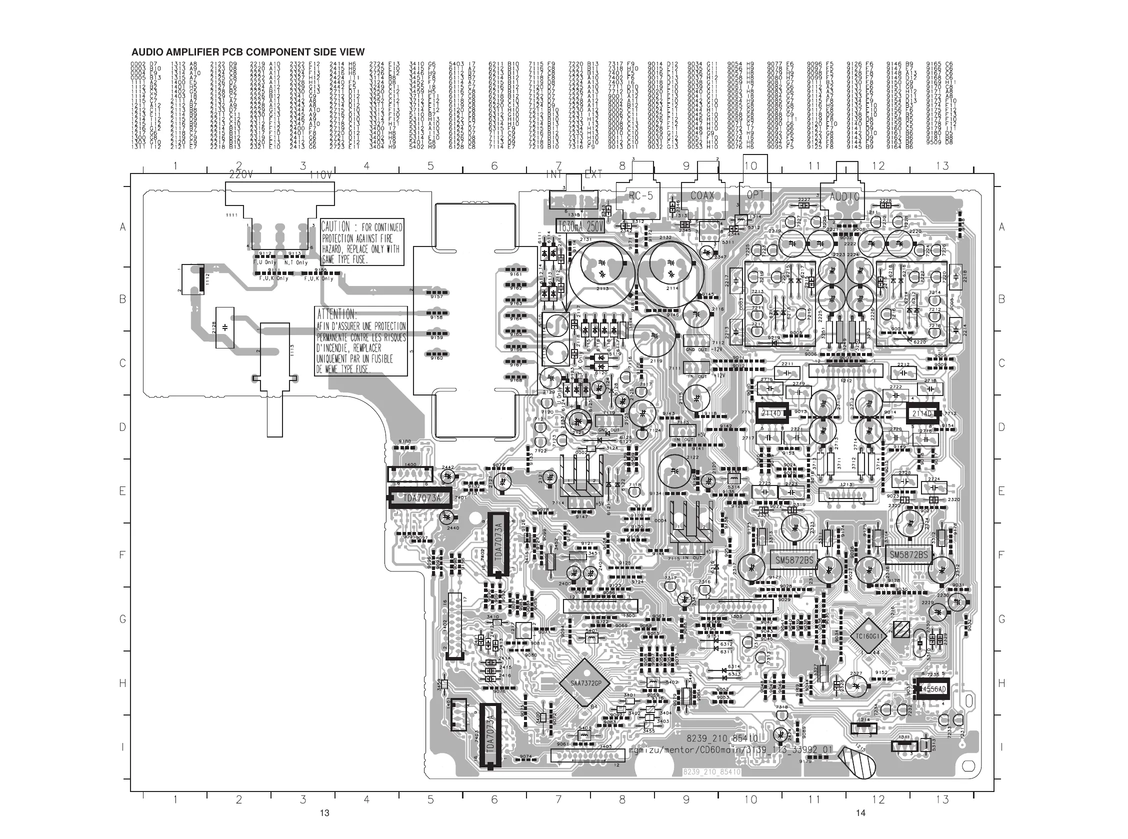 AUDIO AMPLIFIER PCB COMPONENT SIDE VIEW