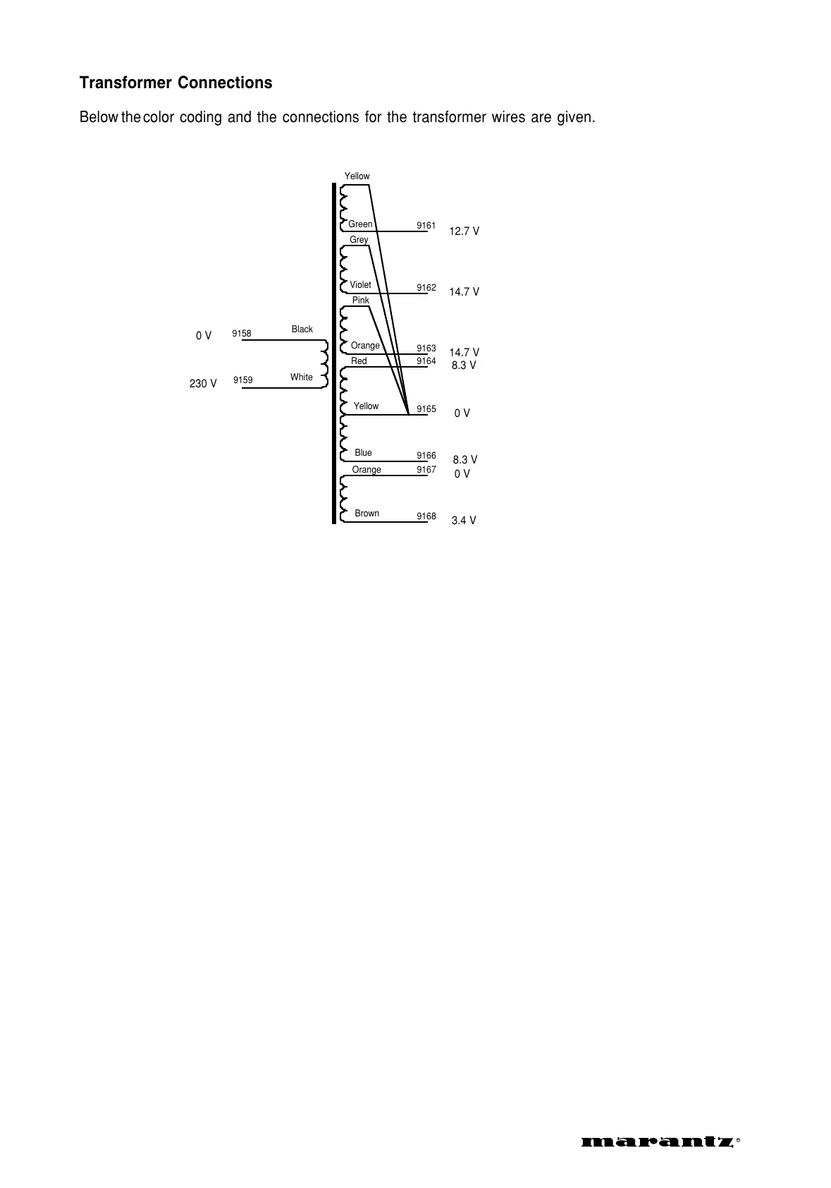 Below the color coding and the connections for the transformer wires are given.