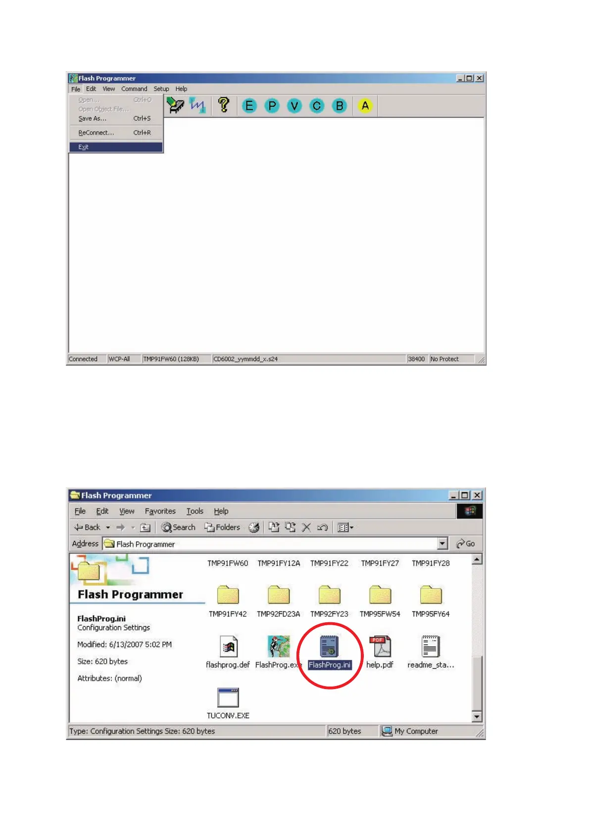 1. Open the FlashProg.ini in the Flash Programmer folder