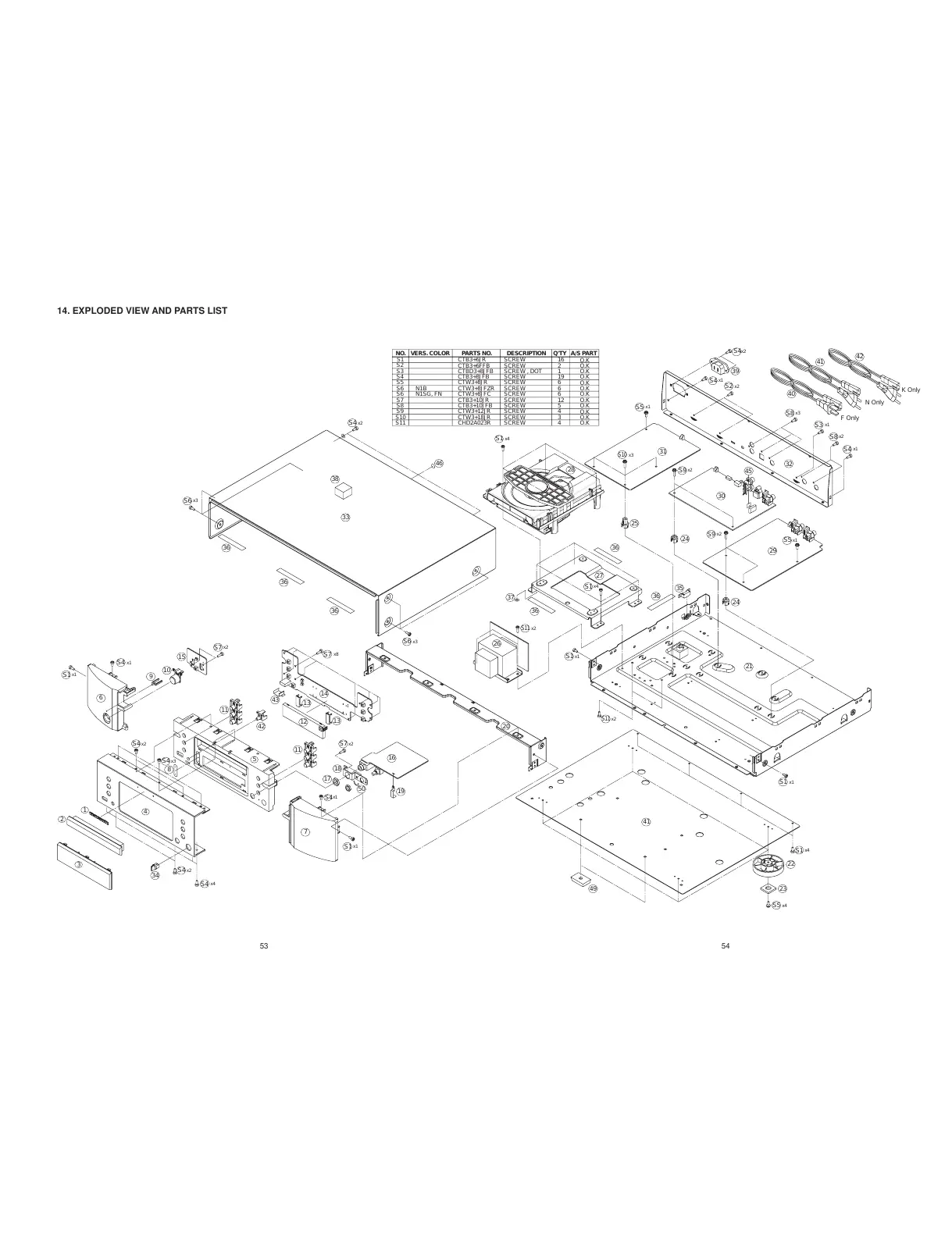 14. EXPLODED VIEW AND PARTS LIST
