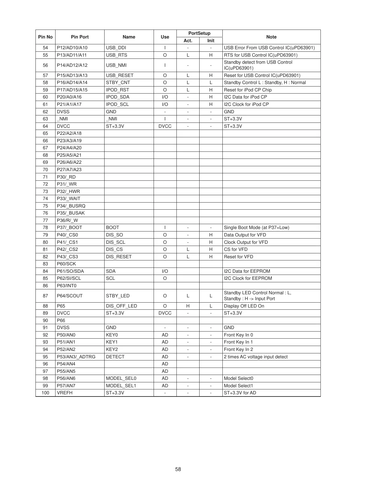 57 P15/AD13/A13 USB_RESET O L H Reset for USB Control IC(uPD63901)