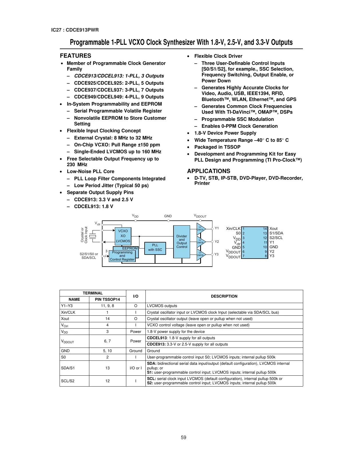 – CDCE913/CDCEL913: 1-PLL, 3 Outputs