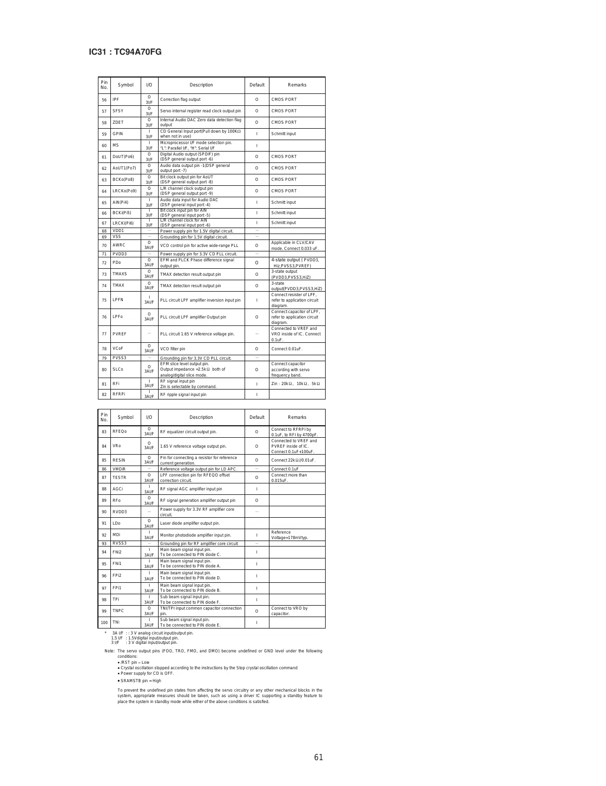 * 3A I/F : : 3 V analog circuit input/output pin.