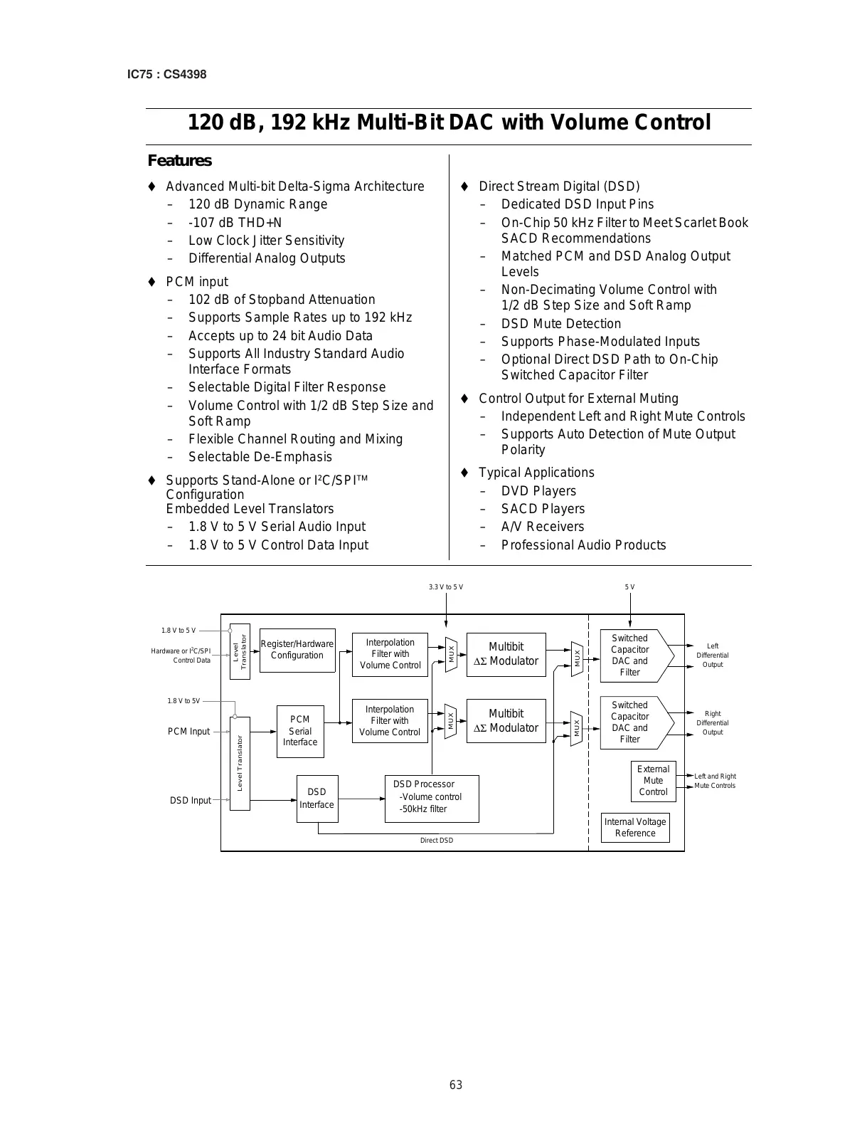 120 dB, 192 kHz Multi-Bit DAC with Volume Control