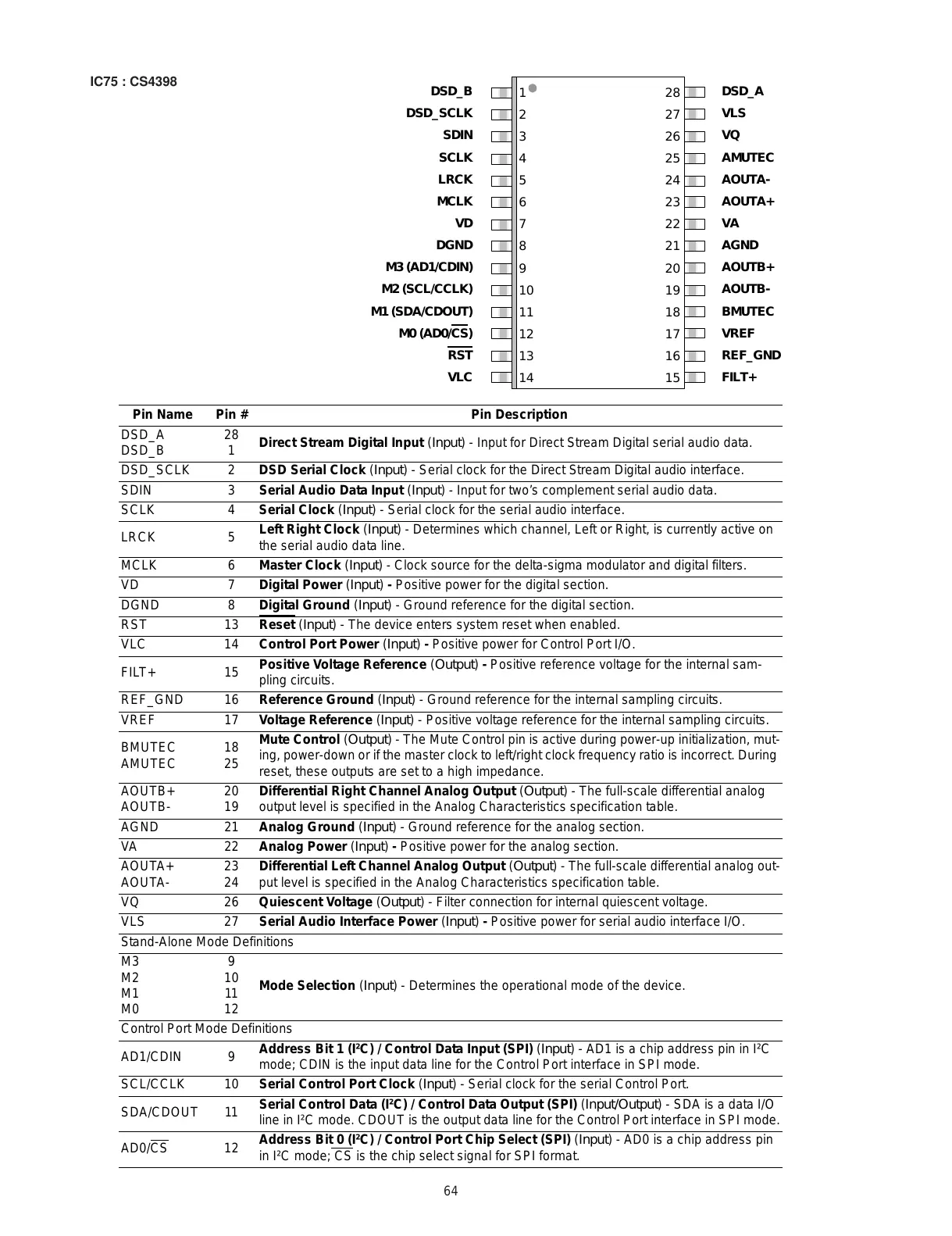 line in I²C mode. CDOUT is the output data line for the Control Port interface in SPI mode.