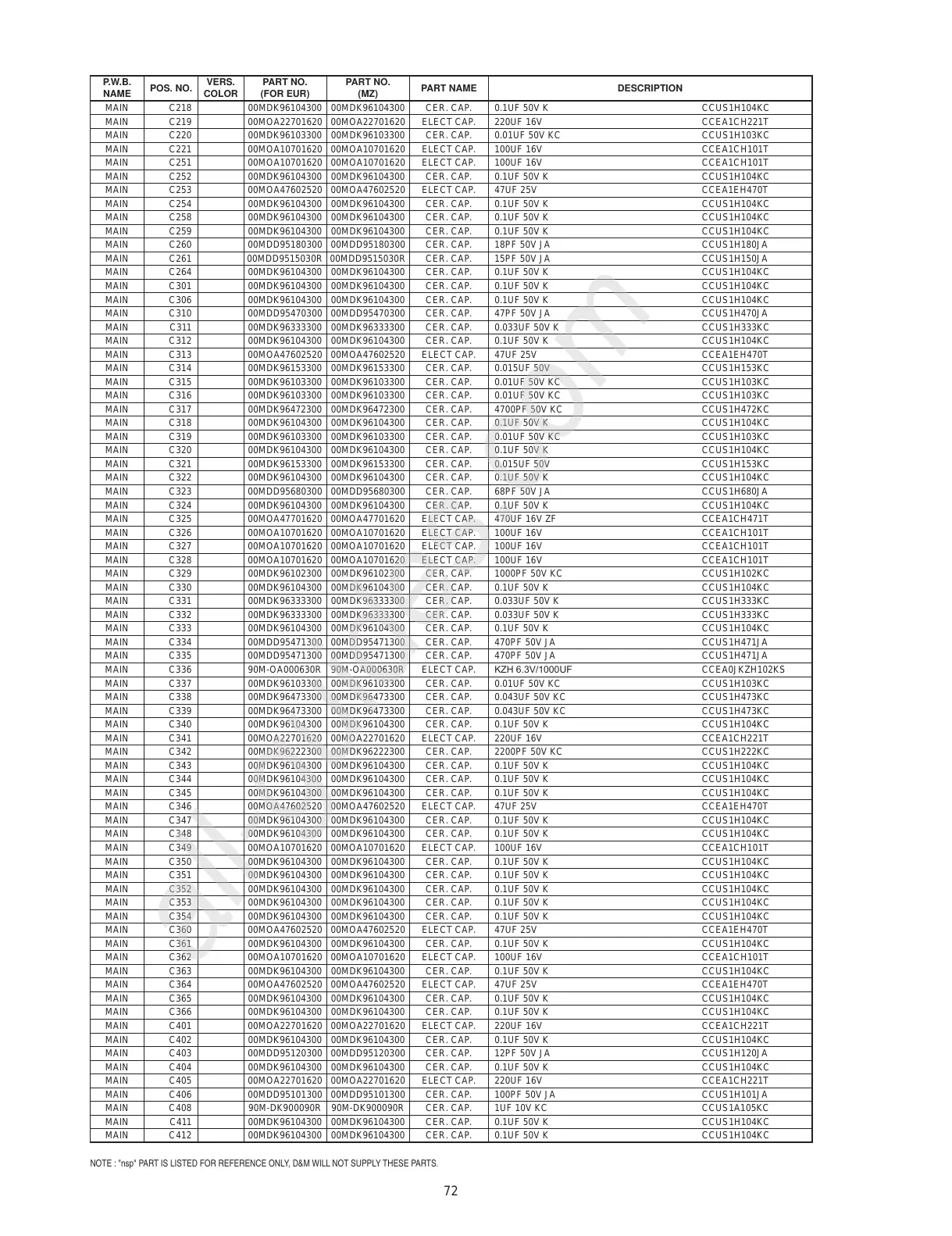 MAIN C220 00MDK96103300 00MDK96103300 CER. CAP. 0.01UF 50V KC CCUS1H103KC