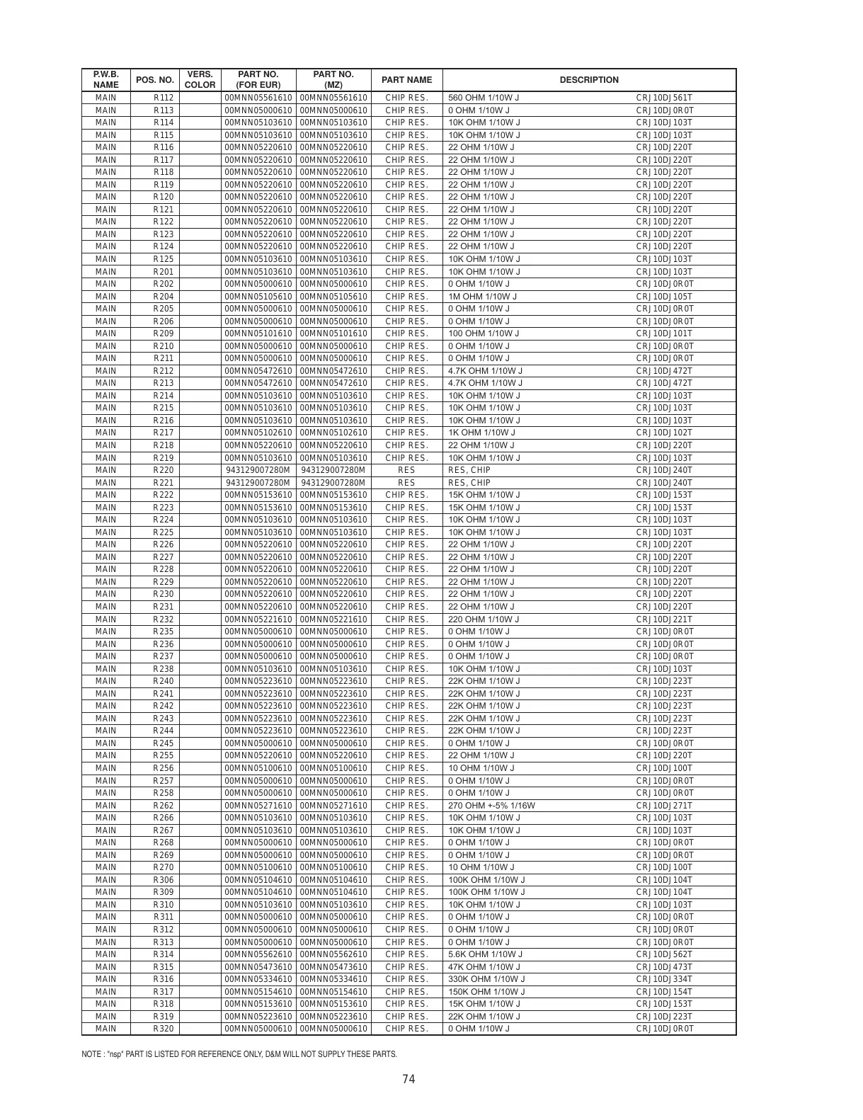 MAIN R113 00MNN05000610 00MNN05000610 CHIP RES. 0 OHM 1/10W J CRJ10DJ0R0T